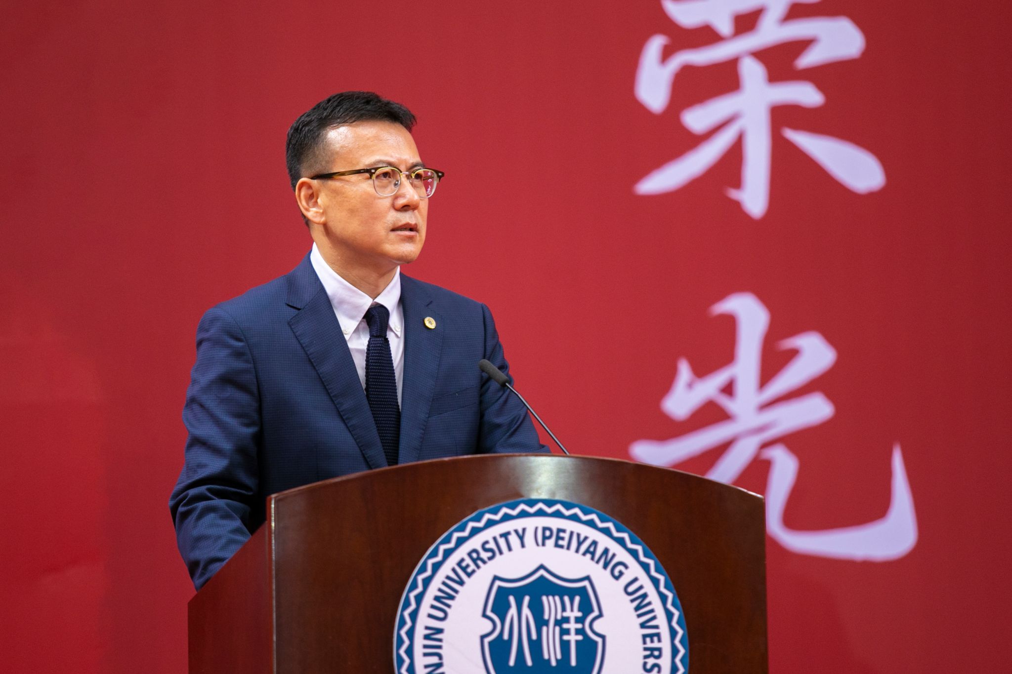 天津大学在津校领导、部分院士专家、各学院领导、学位评定委员会委员、教师代表、辅导员以及机关部处负责同志参加。典礼由天津大学党委常委、副校长李斌主持。