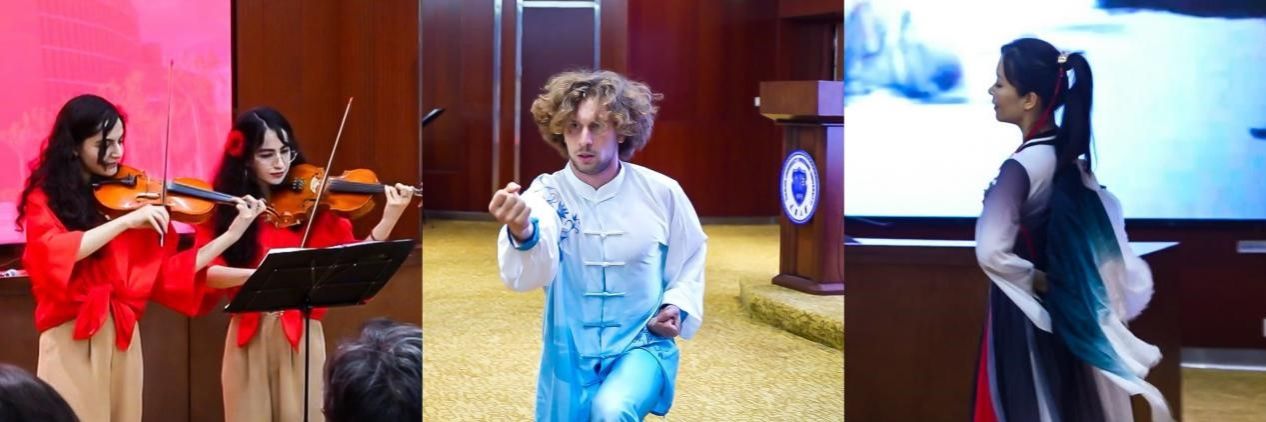 开营仪式上,天津大学伊朗留学生倾情演绎小提琴中国民歌《茉莉花》,格鲁吉亚留学生带来的武术长拳表演,天津大学教师表演的《北洋墨韵》舞蹈更是将现场气氛推向高潮。三个节目层层递进,完美展现了“各美其美、美人之美、美美与共、天下大同”,让在场华裔青少年深刻感受到多元文化交融的魅力。