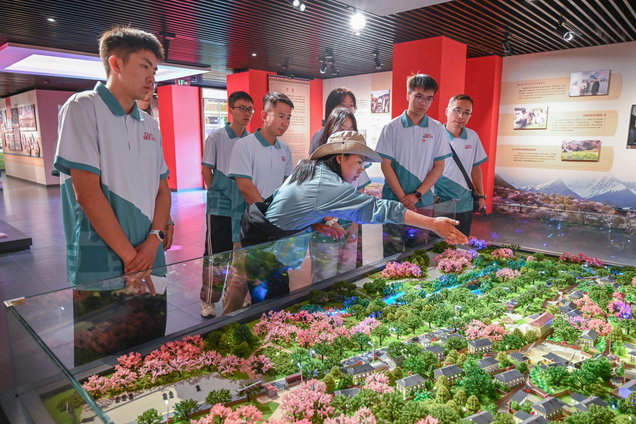 在驻村第一书记杨永强的引领下,实践队师生走进了记录村庄发展变迁的“团结颂”展览馆。馆内生动展示了在各民族群众共同努力下,美丽嘎拉、团结嘎拉的发展历程,让队员们深刻感受到村庄在经济与生态协调发展上的显著成效。