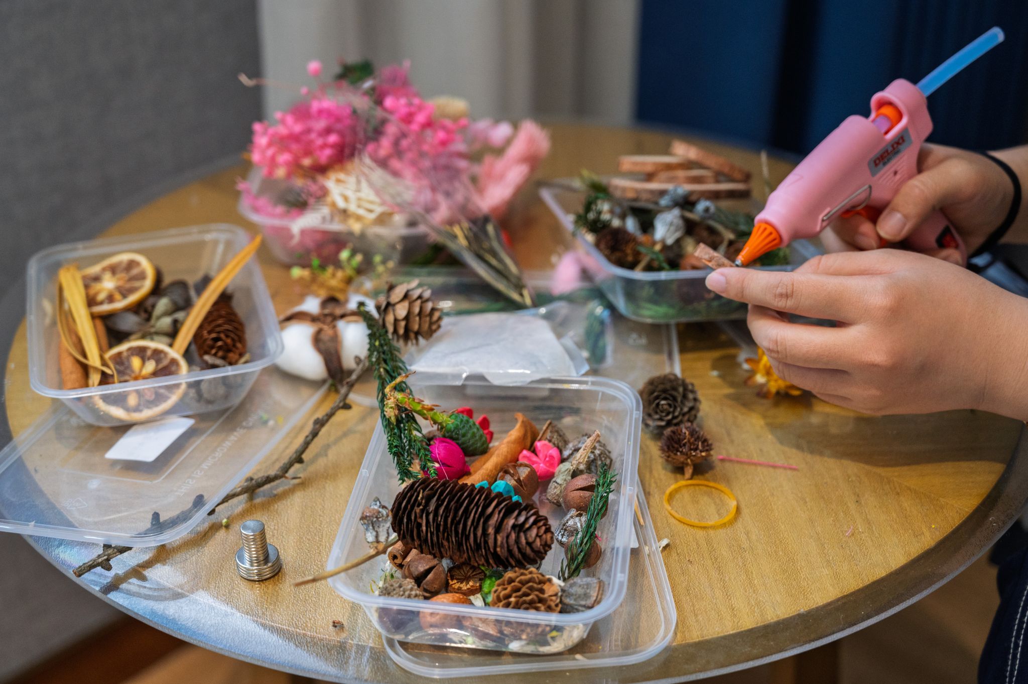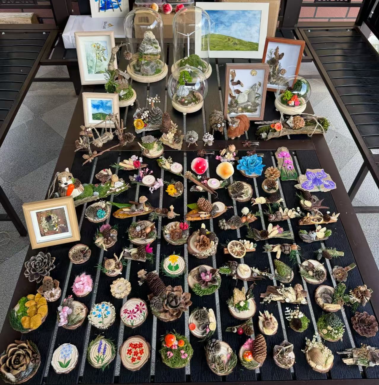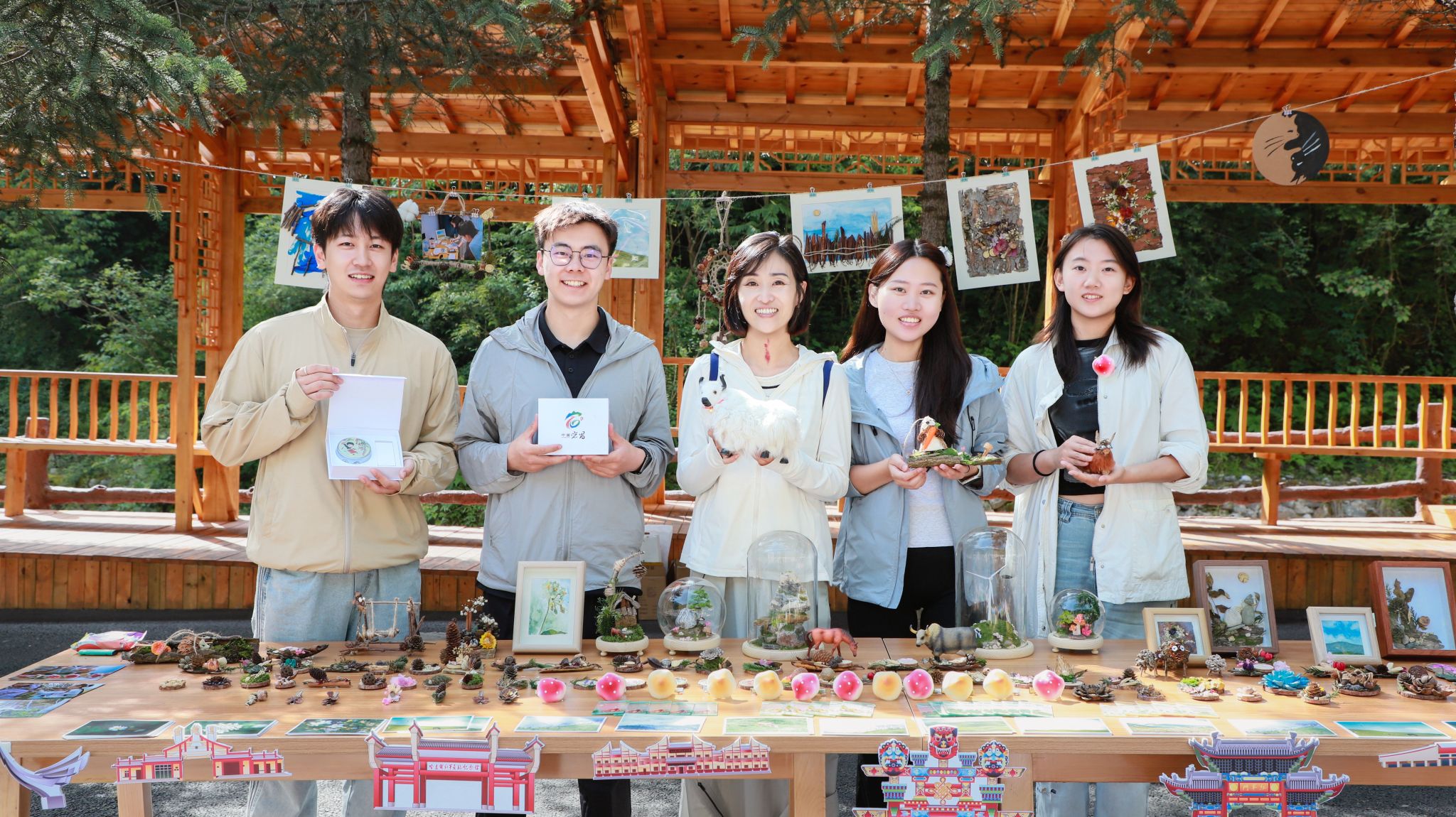 “我们的每件作品都呼吸着宕昌的山水,当地的一草一木、一花一树都是我们创作的原材料。”团队成员王润嫣同学介绍了他们“小手工”的创作内容,官鹅沟的灵山秀水,凝结成姑娘发间一枚雅致的发卡;林间的松果、斑驳的树皮,经过巧思化作小摆件与石头画,自然的呼吸扑面而来;“千年药乡”馈赠的当归、黄芪、党参,悄然嵌入日常的冰箱贴,古老智慧与现代生活欣然相遇……“希望让更多人通过这些指尖的创造,记住这片土地独一无二的美。”