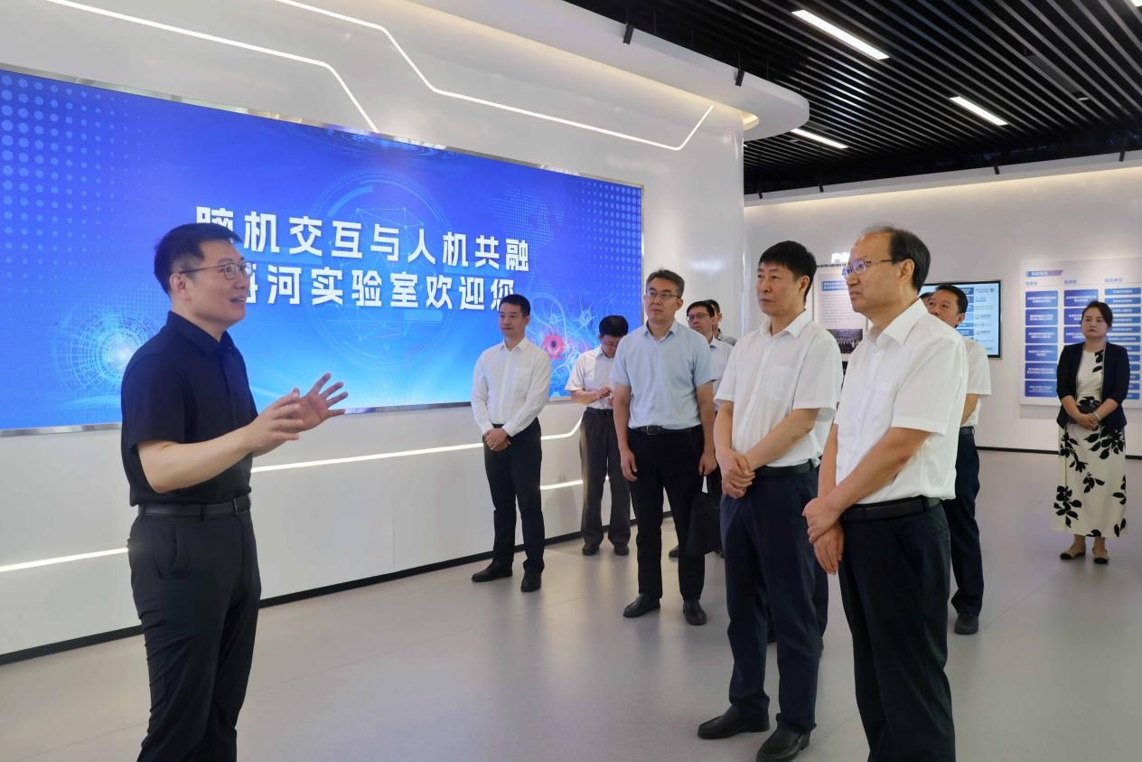 在实验室展厅,周长奎一行详细听取了团队关于科研布局、创新成果及应用转化等方面的介绍,现场观摩了脑机接口技术在医疗等领域的重大应用以及典型科研成果。