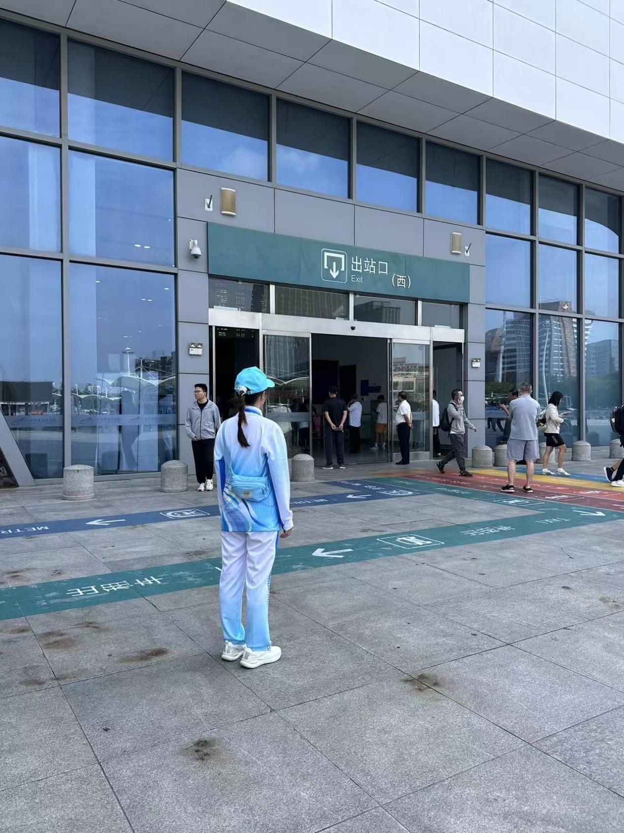 我负责引导与秩序调节工作,日常需在入口迎接外宾、指引会场路线,同时疏导可能出现的拥堵、协助宾客搭乘摆渡车,全力保障宾客安全有序入场。盛夏的露天值守颇具挑战,轮班站岗、迎送宾客时需直面烈日,但温暖也常伴左右:经验丰富的摆渡车司机师傅熟悉路线,偶尔的闲聊总能驱散工作的紧张,让我倍感安心。工作时也会遇到小惊喜,志愿者们所在的位置能见到可爱温顺的史宾格警犬,为值守时光增添了许多乐趣。更珍贵的是,我领悟到了实践才是检验真理的唯一标准。