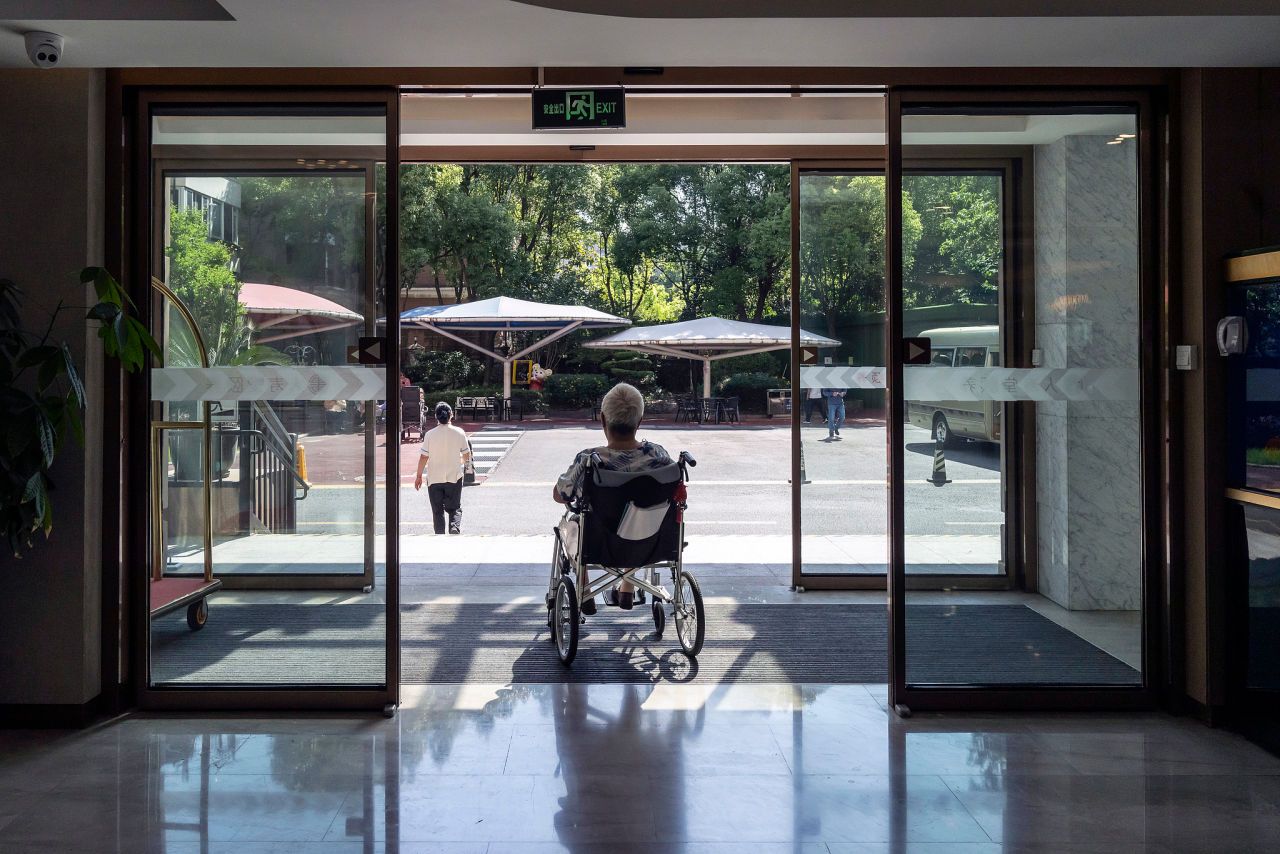 2025年6月6日,上海人寿堂文锦护理院,一名坐轮椅的住户在院内。视觉中国图