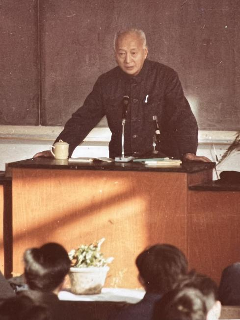 1983年12月李赋宁教授在天大西阶梯教室面向全校讲授公开课