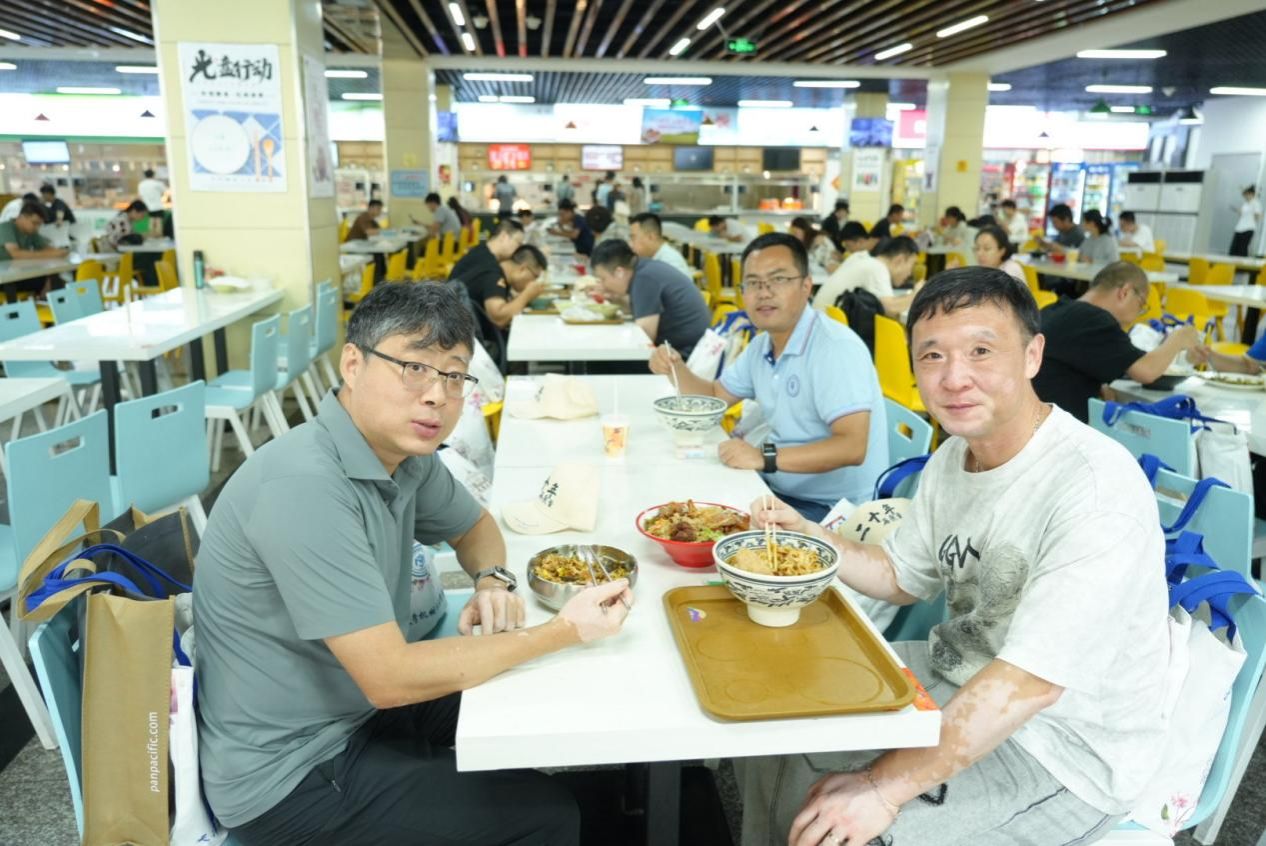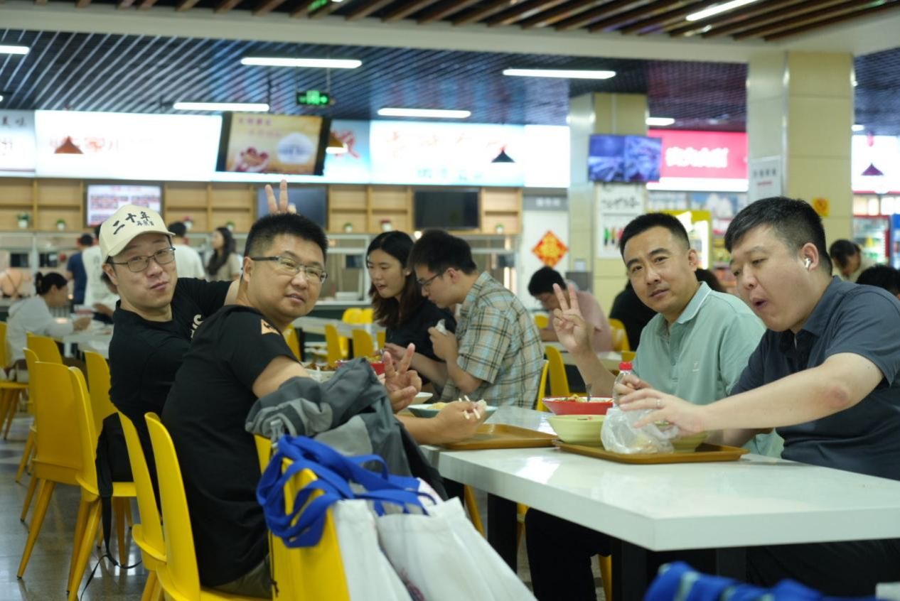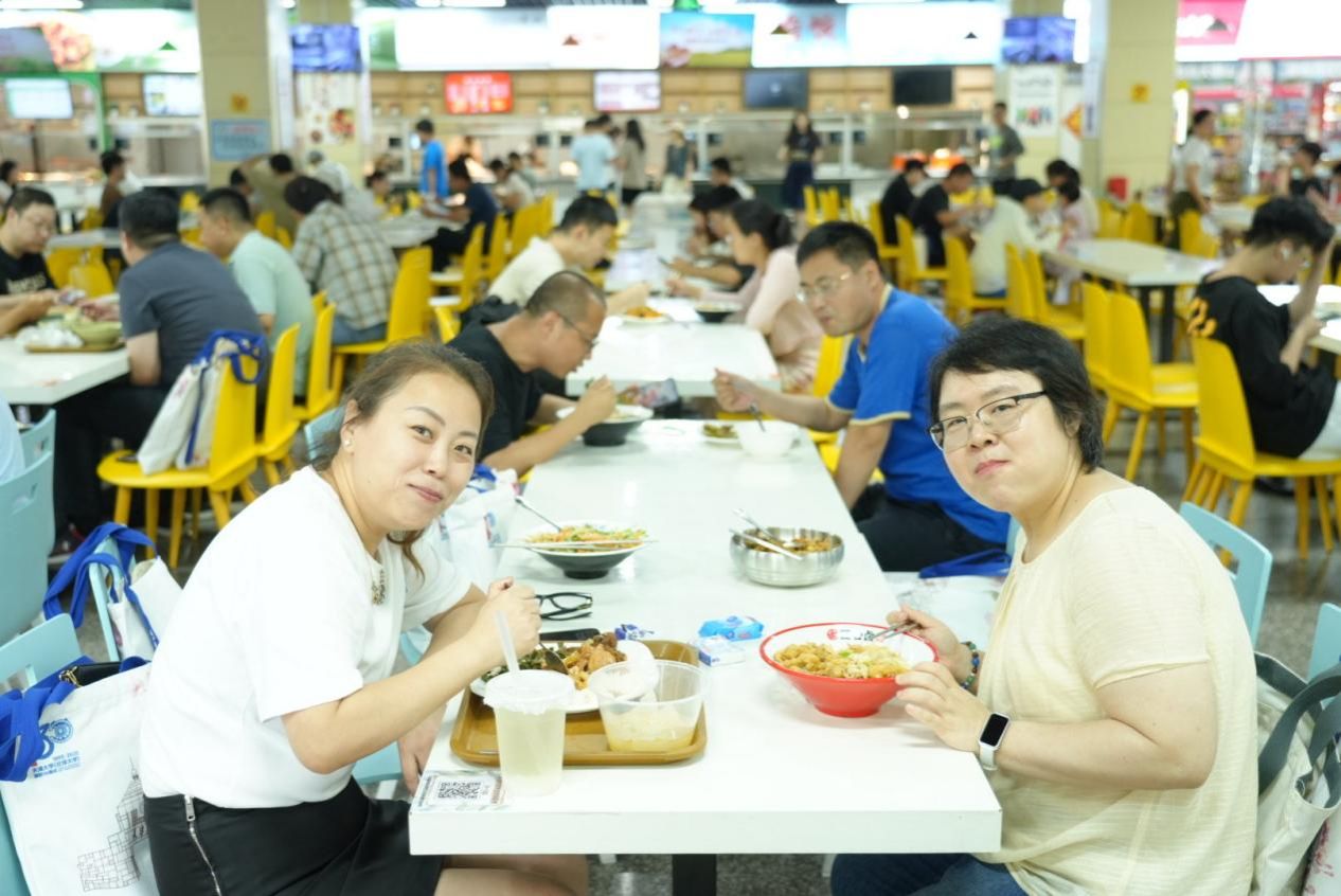 食堂里的烟火气瞬间点燃集体记忆——不锈钢餐盘的碰撞声、窗口阿姨的吆喝声、同窗间分享菜肴的欢笑声,与二十年前别无二致。他们围坐在长条餐桌旁,一边品尝着记忆中的“天大味道”,一边畅聊各自的事业与生活,从行业发展到育儿心得,从当年的课堂往事到如今的人生感悟,言语间满是久别重逢的热络与亲切。