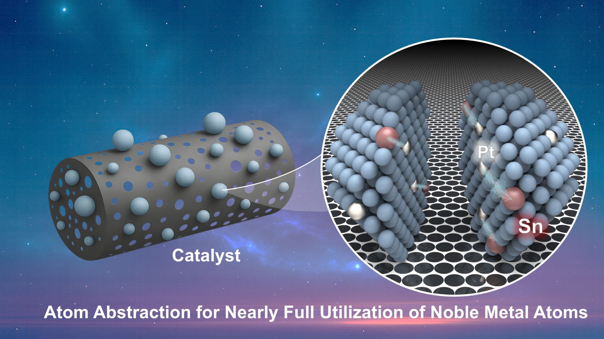 面对这一挑战,天津大学新能源化工团队在团队负责人巩金龙教授带领下,经过近十年潜心研究,开创性地研发出“原子抽提”技术:通过在铜(Cu)纳米颗粒中引入锡原子(Sn),利用Sn原子半径大于Cu使Sn偏析到表面,而Sn与铂(Pt)之间存在强相互作用可以将嵌入铜晶格内Pt 原子“抽提”至表面。该策略实现了近百分之百的贵金属原子表面分散度,并以金属态稳定存在。在丙烷脱氢工业相关反应条件下,所开发的催化剂在Pt用量仅为类商用催化剂十分之一的情况下,仍表现出相当的催化活性,并具备更优的稳定性和选择性。这项突破成功解决了丙烯产业长期面临的催化剂成本高、贵金属资源依赖强等关键瓶颈,为推动化工行业向“低耗、高效、绿色”转型提供了重要技术支撑。