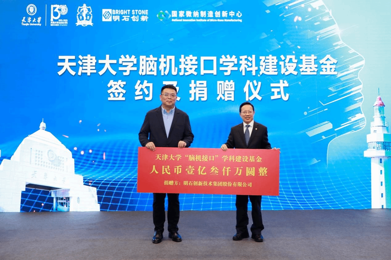 9月29日下午,在天津大学喜迎建校130周年之际,天津大学校友伉俪——国家微纳制造创新中心董事长高峰,明石创新技术集团董事、总经理唐焕新重返母校,捐赠1.3亿元人民币,设立“天津大学脑机接口学科建设基金”。