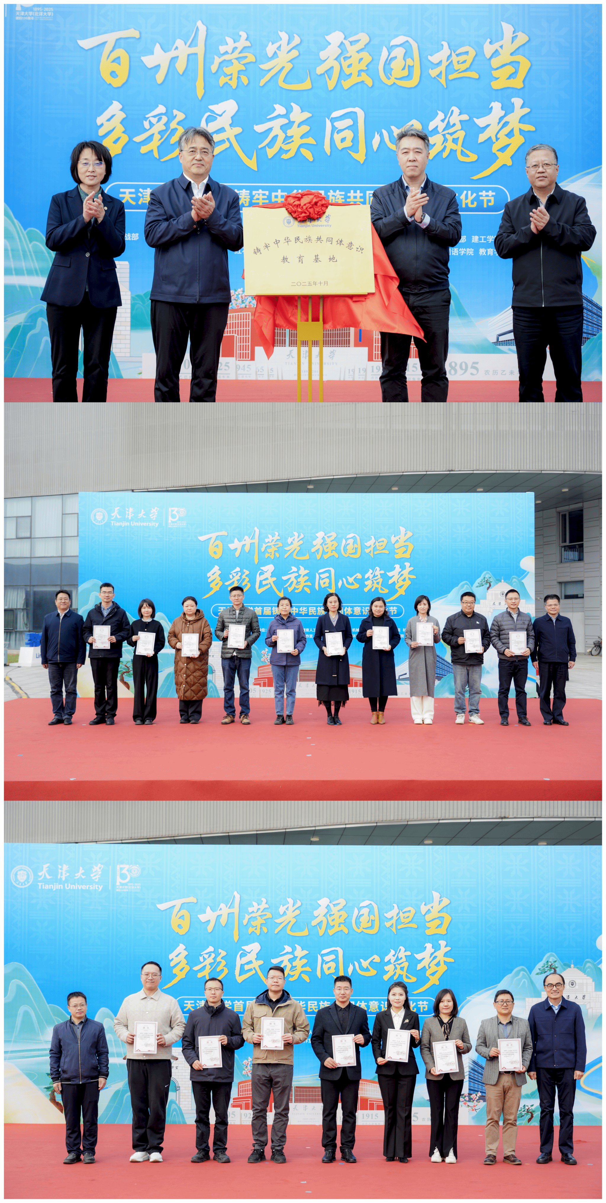 我校于今年正式建成“天津大学铸牢中华民族共同体意识教育基地”,标志着我校民族团结进步教育工作迈向依托实体阵地、实现常态化发展的新阶段。开幕式上郭庆、韩庆华、颜世杰和张俊艳共同为基地揭牌。穆怀寅、王著名为机械学院等10个首批“铸牢中华民族共同体意识工作试点单位”颁发证书,邓先进为马克思主义学院张凯峰等7位基地指导教师颁发聘书。