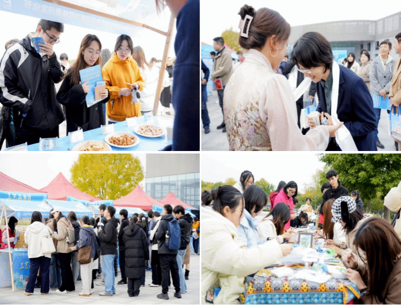 本次文化节体验区共设有六大板块,分别为民族服饰、特色美食、传统工艺品、民族乐器、民俗互动与知识问答。学生们可在此试穿各式民族服装,品尝各地风味美食,并亲身体验冬不拉、马头琴等民族乐器的演奏,以及投壶、蒙古族毡画贴画、彝族彩绳手链等丰富多彩的手工活动。现场气氛热烈,吸引了众多学生踊跃参与。凡完整参与六个展区活动的同学,还可抽取一个民族风情海小棠盲袋作为纪念。