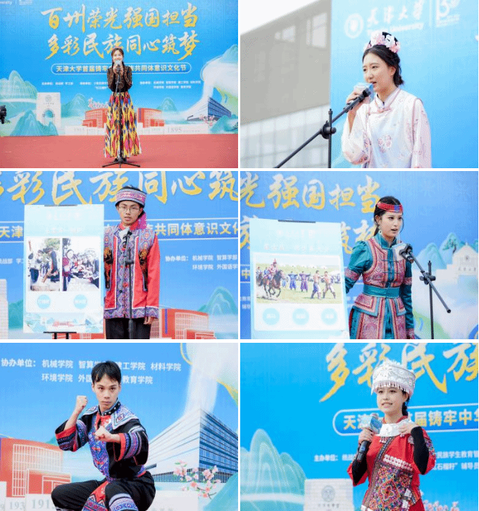 本站讯 10月24日,天津大学首届铸牢中华民族共同体意识文化节在北洋园校区大通学生活动中心A区前广场顺利举办。文化节结合丰富多彩的歌舞表演和文化体验,生动构建了各族师生交往交流交融的重要平台,切实营造了“中华民族一家亲”的浓厚校园氛围。参加文化节开幕式的嘉宾有天津市民族与宗教事务委员会党组成员、副主任郭庆,天津大学党委副书记韩庆华,天津市委统战部二处处长颜世杰,天津市民族与宗教事务委员会民族二处处长穆怀寅,天津市教育两委统战处处长王著名以及相关单位代表邓先进,天津大学党委常委、统战部部长张俊艳。本次活动由统战部、学工部主办,机械学院、智算学部、建工学院、材料学院、环境学院、外国语学院、教育学院六个学院承办,近千名学生参与其中。