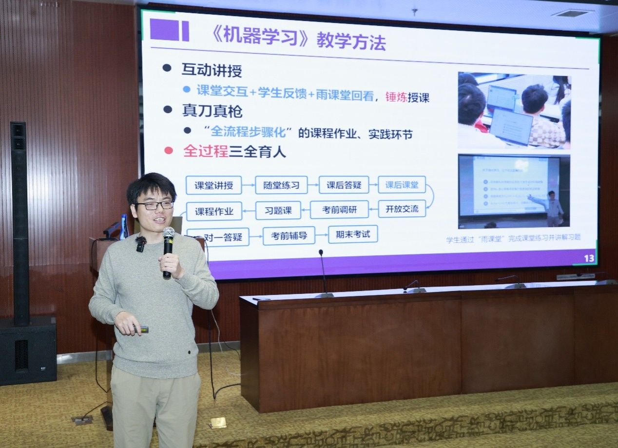 论坛伊始,龙明盛老师以《机器学习课程建设与课堂实践》为题作报告,系统讲解了清华大学机器学习精品课程的体系化建设经验与成果。该课程立足知识传授、能力提升与价值观塑造,聚焦监督学习理论、无监督学习、强化学习及优化理论四大核心模块展开,重点论述了“数学原理与编程实现有机融合”的核心教学理念,深入分享了该课程体系的设计思路、创新的教学方法应用,以及将前沿科研成果动态融入课堂教学的实践路径与宝贵经验,为高等院校机器学习课程建设提供了极具价值的参考范式。