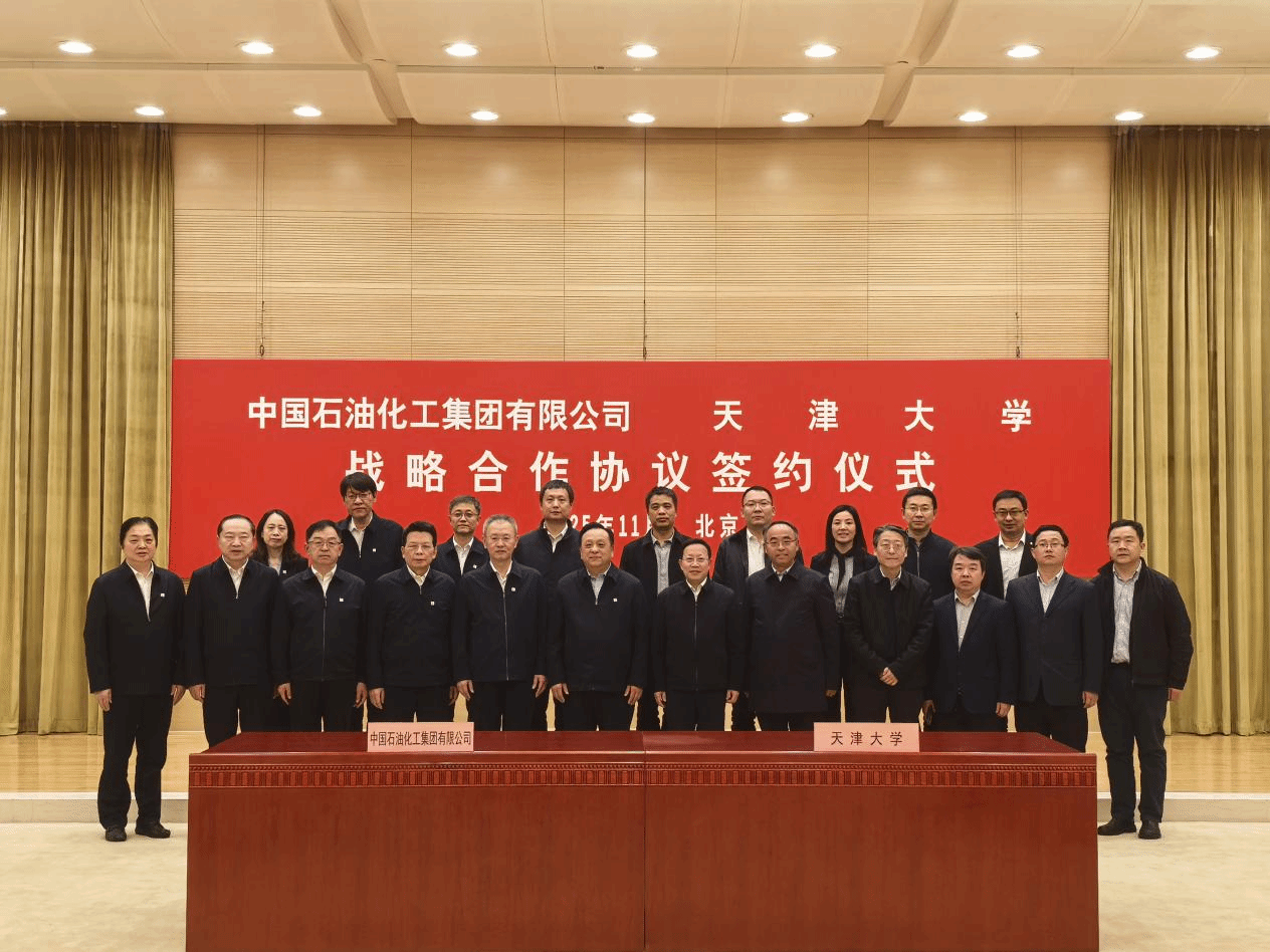 11月7日下午,天津大学与中国石油化工集团有限公司(以下简称中国石化)战略合作协议签约仪式在中国石化大厦举行。中国石化董事长、党组书记侯启军,天津大学校长、党委副书记柴立元出席签约仪式并见证签约。中国石化党组成员、副总经理万涛,校党委常委、常务副校长胡文平代表双方签约。
