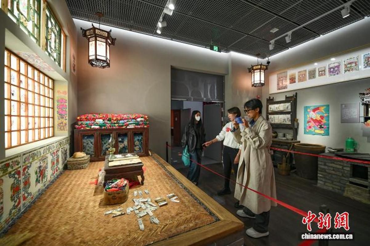11月22日,天津大学冯骥才博物馆落成仪式举行。博物馆坐落于天津大学卫津路校区青年湖畔,通过保护性修缮两座遗产建筑改建而成,涵盖“中国年画史”“美的历程”等11个不同主题的展厅,展示了冯骥才多年在文学、绘画、文化遗产保护等领域的成果和他毕生收藏的精华。图为嘉宾参观中国四大传统节日标志物。中新社记者 佟郁 摄