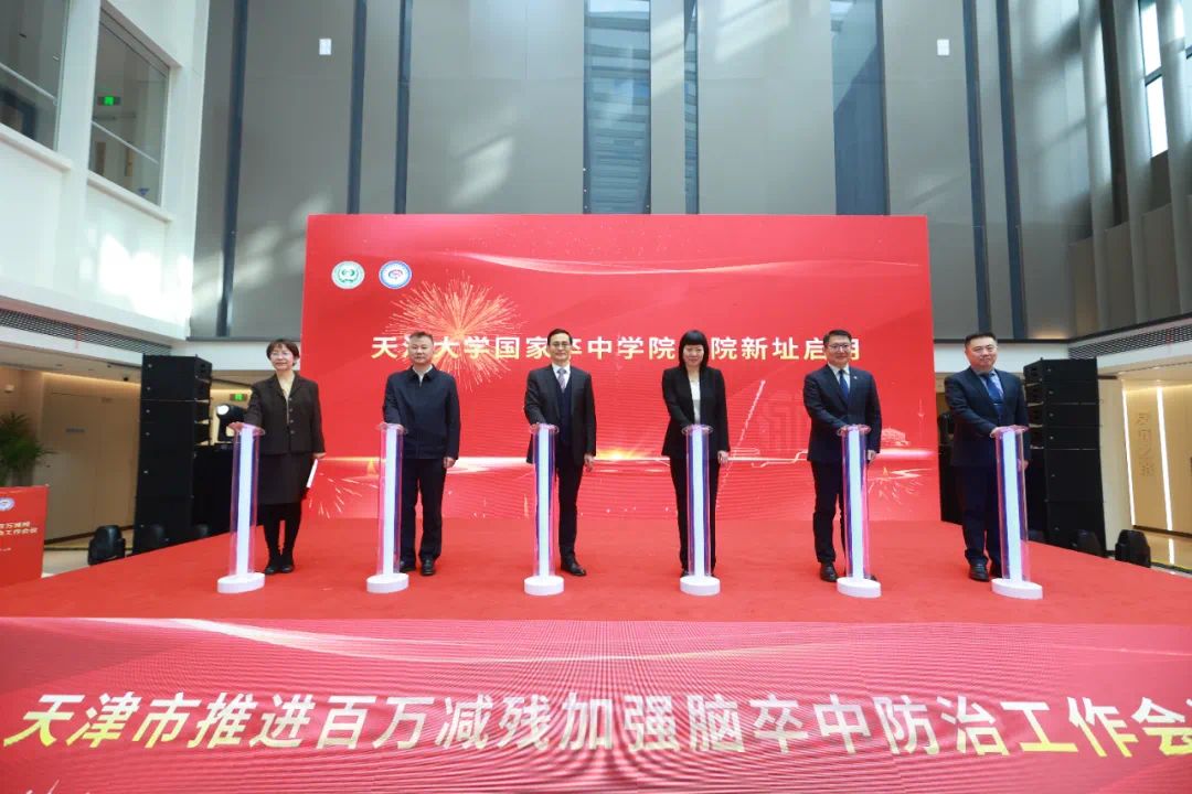 天津大学国家卒中学院分院新址启用仪式也在同期举行。新址毗邻环湖医院天塔新院区,与天塔院区形成“一体两翼”、功能完善的医疗、教学、科研、预防一体化卒中防控平台。天津大学国家卒中学院分院将以此为契机,发挥医工融合优势,打造脑血管病特色名片,勇攀医学科技高峰,建设脑卒中领域的技术培训基地、人才培养高地、科研创新平台、学术交流中心。新址的启用标志着天津大学国家卒中学院分院发展掀开崭新的篇章,为天津卒中防治注入强劲动力。