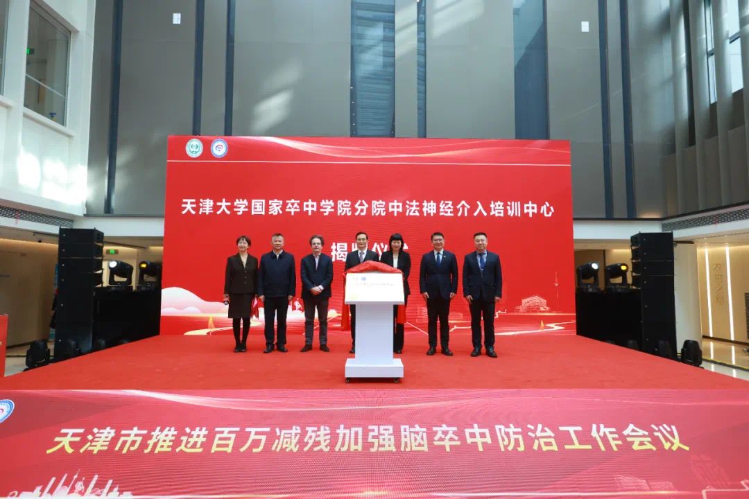 “天津大学国家卒中学院中法神经介入培训中心”揭牌仪式在同日举行,佟小光与法国Spelle教授共同揭牌。天津大学国家卒中学院中法神经介入培训中心由天津大学国家卒中学院与法国神经介入专家团队联合打造,旨在推动中法两国在神经介入领域的专业培训、技术交流与科研合作,为天津卒中介入诊疗水平提升、人才培养及国际技术引进搭建重要平台。