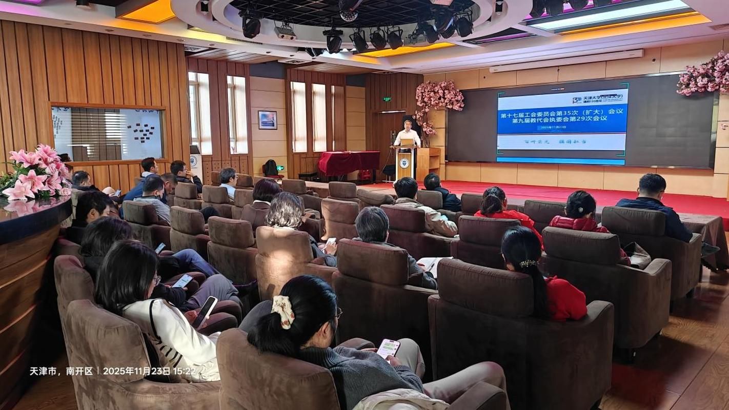 11月23日,天津大学第十七届工会委员会第三十五次(扩大)会议与第九届教代会执委会第二十九次会议在卫津路校区教职工文化活动中心多功能厅联合召开。学校第十七届工会委员会委员和第九届教代会执委会委员参加本次会议。会议由天津大学工会常务副主席宋雪峰主持。