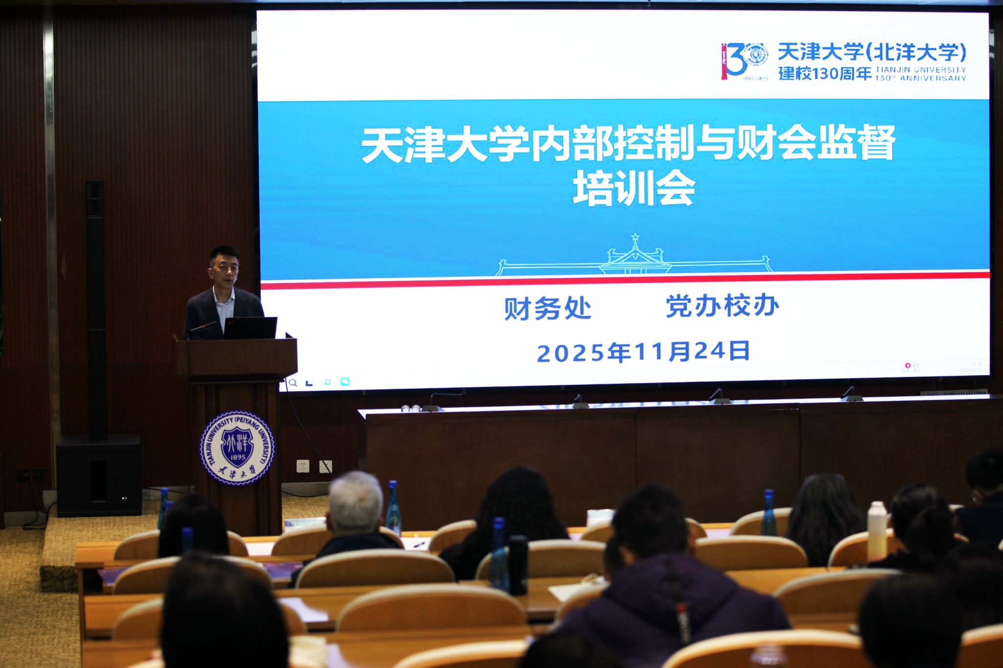 为深入贯彻党中央、国务院关于加强财会监督、完善内部控制的重大决策部署,准确理解最新政策精神,系统分析学校在新形势下面临的机遇与挑战,并部署下一阶段重点工作。11月24日,财务处联合党办校办成功举办“天津大学内部控制与财会监督”专题培训会,副校长明东出席会议并发表讲话。学校各学院、机关部处、直属单位分管工作负责同志和工作人员,财务处科级以上干部共计百余人参加此次培训。培训会由学校总会计师、财务处处长张鹏主持。会议特邀安永(中国)企业咨询有限公司行政事业单位咨询业务总监吴楠,财务处副处长王连叶做专题讲座。