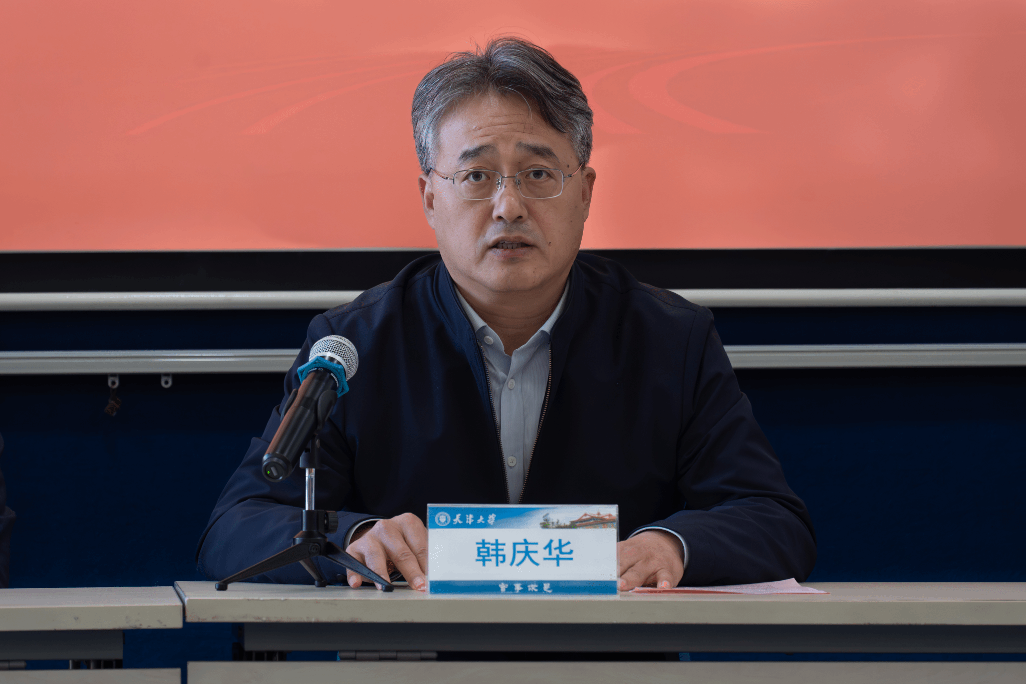 韩庆华代表学校党委对新一届委员会的产生表示祝贺,希望新一届委员会团结带领全体盟员,始终坚守合作初心,持续强化思想政治引领,不断提升履职能力,建真言、谋良策、出实招,努力建设政治坚定、组织坚实、履职有力、作风优良、制度健全的高素质参政党基层组织,为推进中国式现代化建设和天津大学发展贡献智慧。