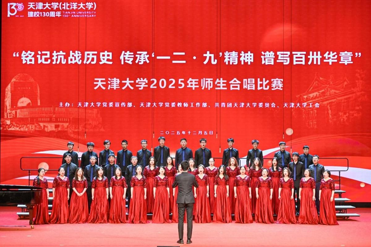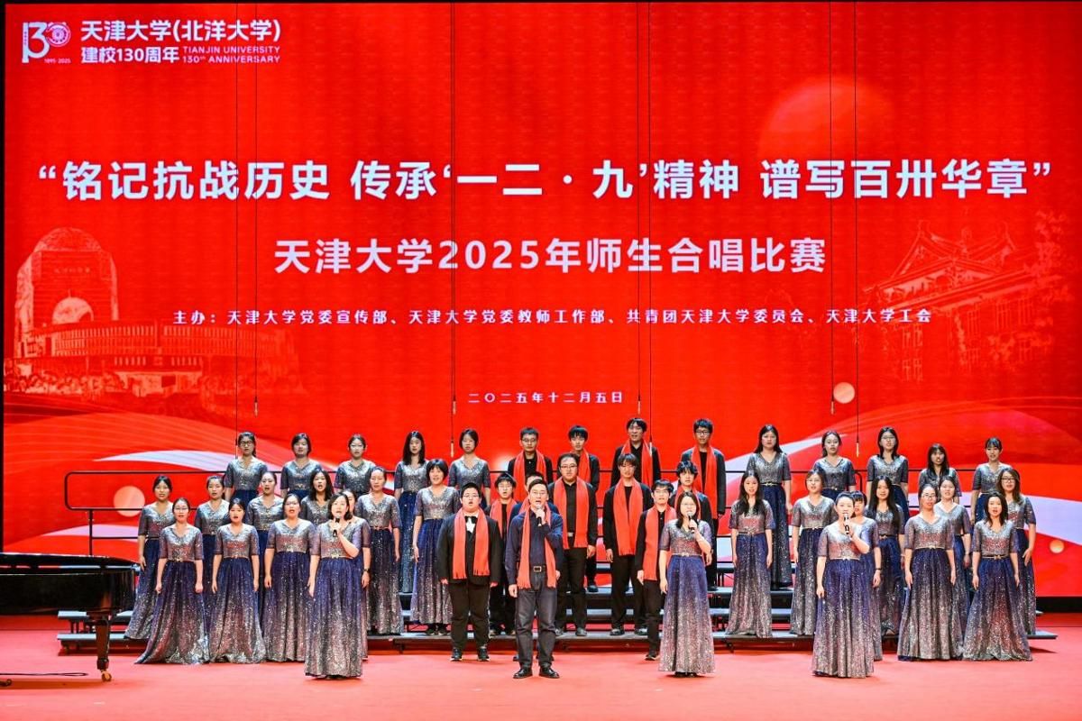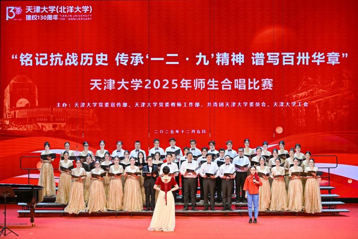 12月5日,由学校宣传部、教工部、校团委、校工会联合主办的“铭记抗战历史 传承‘一二・九’精神 谱写百卅华章”师生合唱比赛在北洋园校区求实会堂隆重举行。25支参赛队伍、1400多名师生同台竞技,用嘹亮歌声回望烽火岁月,用激昂旋律礼赞百年学府,为现场观众呈现了一场兼具思想深度与艺术感染力的盛宴。