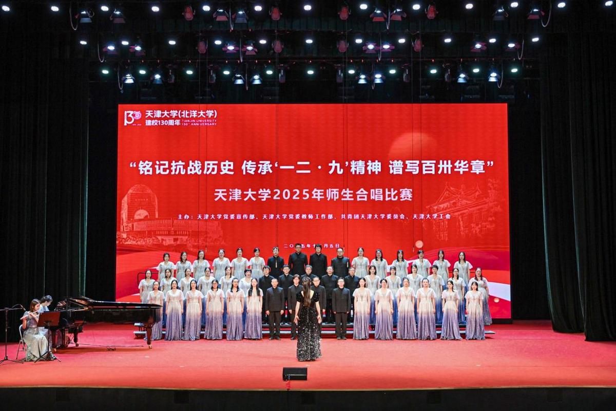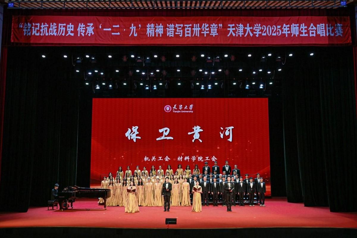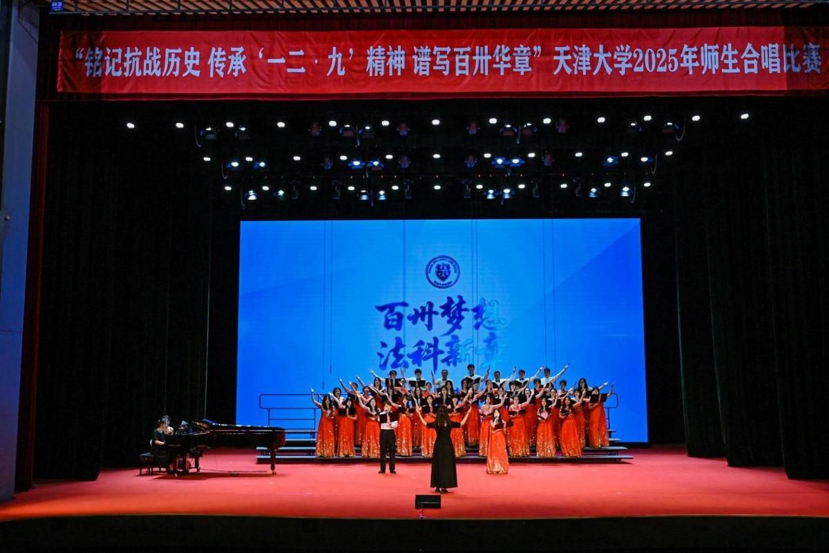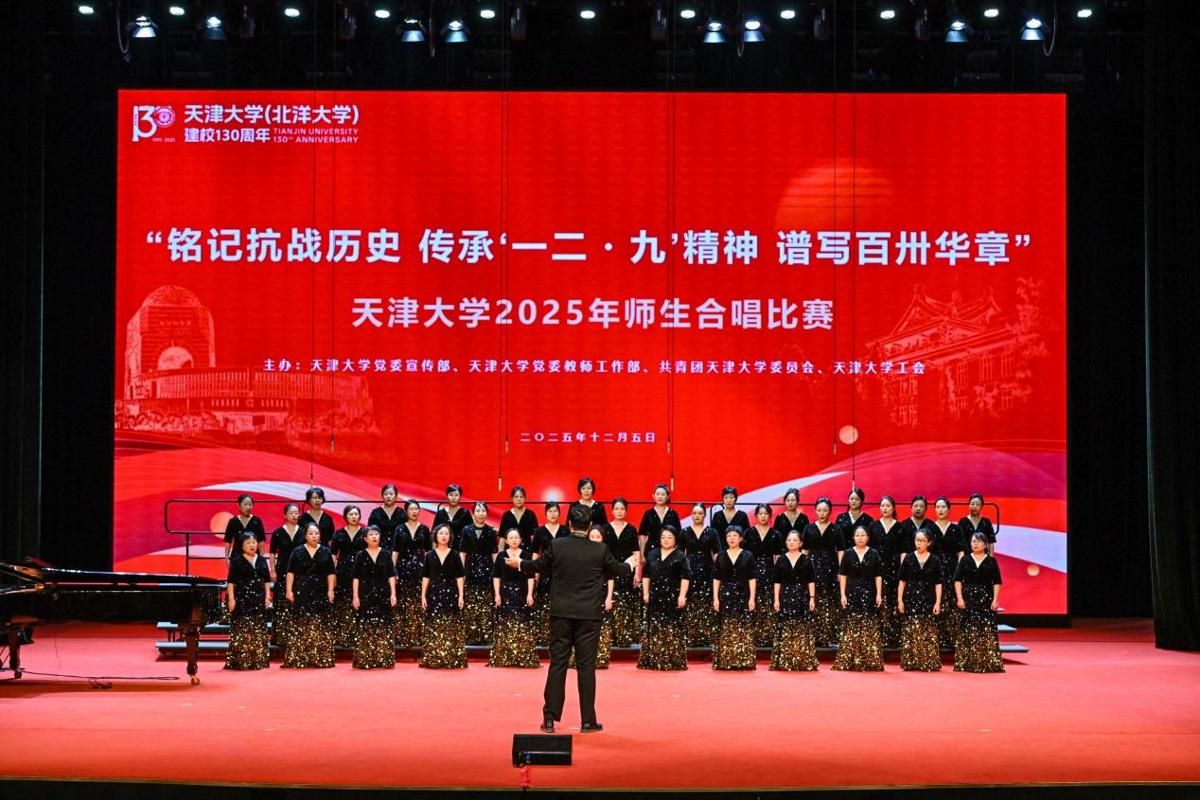 12月5日,由学校宣传部、教工部、校团委、校工会联合主办的“铭记抗战历史 传承‘一二・九’精神 谱写百卅华章”师生合唱比赛在北洋园校区求实会堂隆重举行。25支参赛队伍、1400多名师生同台竞技,用嘹亮歌声回望烽火岁月,用激昂旋律礼赞百年学府,为现场观众呈现了一场兼具思想深度与艺术感染力的盛宴。