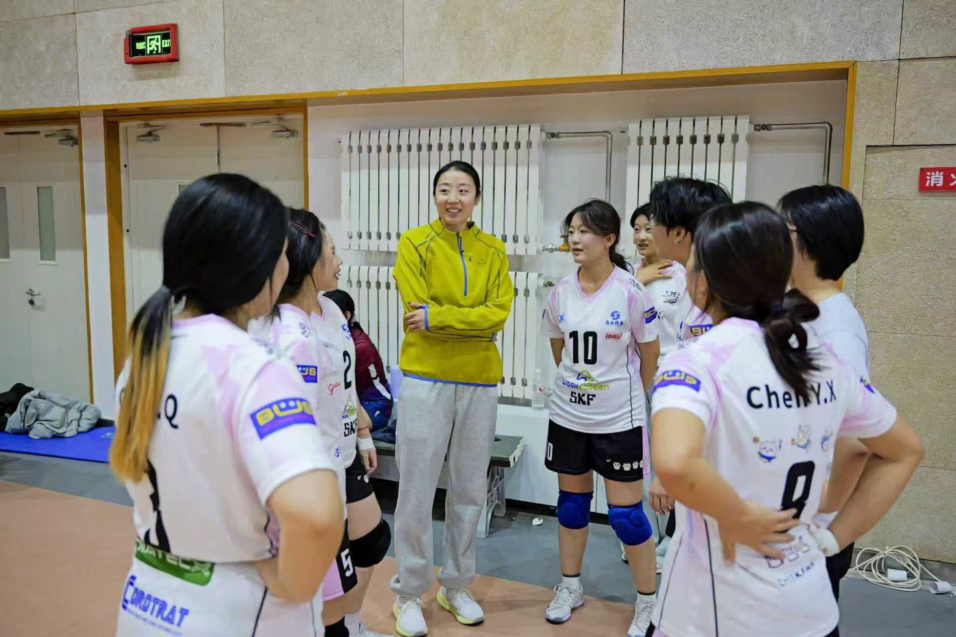 姚迪走进比赛现场,与参赛队伍亲切交流,并针对技术细节给予专业指导。她耐心观察同学们的场上表现,从传球手型到战术跑位,逐一提出建议,更鼓励大家“信任队友、享受过程”,在协作中共同成长。闭幕环节,姚迪为男子组、女子组前三名队伍颁奖,并与获奖队员合影留念。