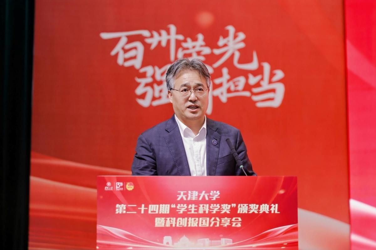 为深入学习贯彻党的二十大和二十届四中全会精神和习近平总书记给我校全体师生的重要回信精神,进一步将创新创业教育融入学校人才培养全过程,营造浓郁创新创业氛围,12月23日下午,天津大学举办第二十四期“学生科学奖”颁奖典礼暨科技报国分享会。校党委副书记韩庆华出席活动并为“学生科学奖”获奖学生颁奖。第九期“学生科学奖”得主、医学部药学院院长刘秀云,校团委、教工部、学工部、教务处、研究生院、科研院、校友与基金事务处、宣怀学院相关负责同志,各学院(部)党委副书记、团委书记、创新创业指导教师及学生代表参加会议。