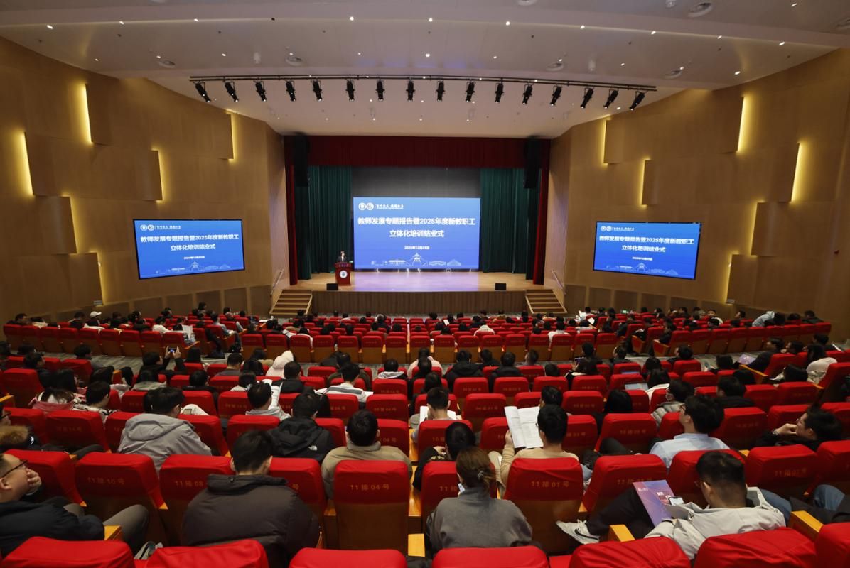 2025年12月25日下午,天津大学教师发展专题报告暨2025年度新教职工立体化培训结业式在北洋园校区国家地震工程科学中心茅以升厅举行。校长柴立元出席并作专题报告。2025年度新入职教职工、科技创新领军人才培育计划教师、新聘研究生导师、青年骨干教师培训班学员、相关部处负责同志及各学院分管科研的副院长共计400余人参加学习。会议由党委常务副书记雷鸣主持。