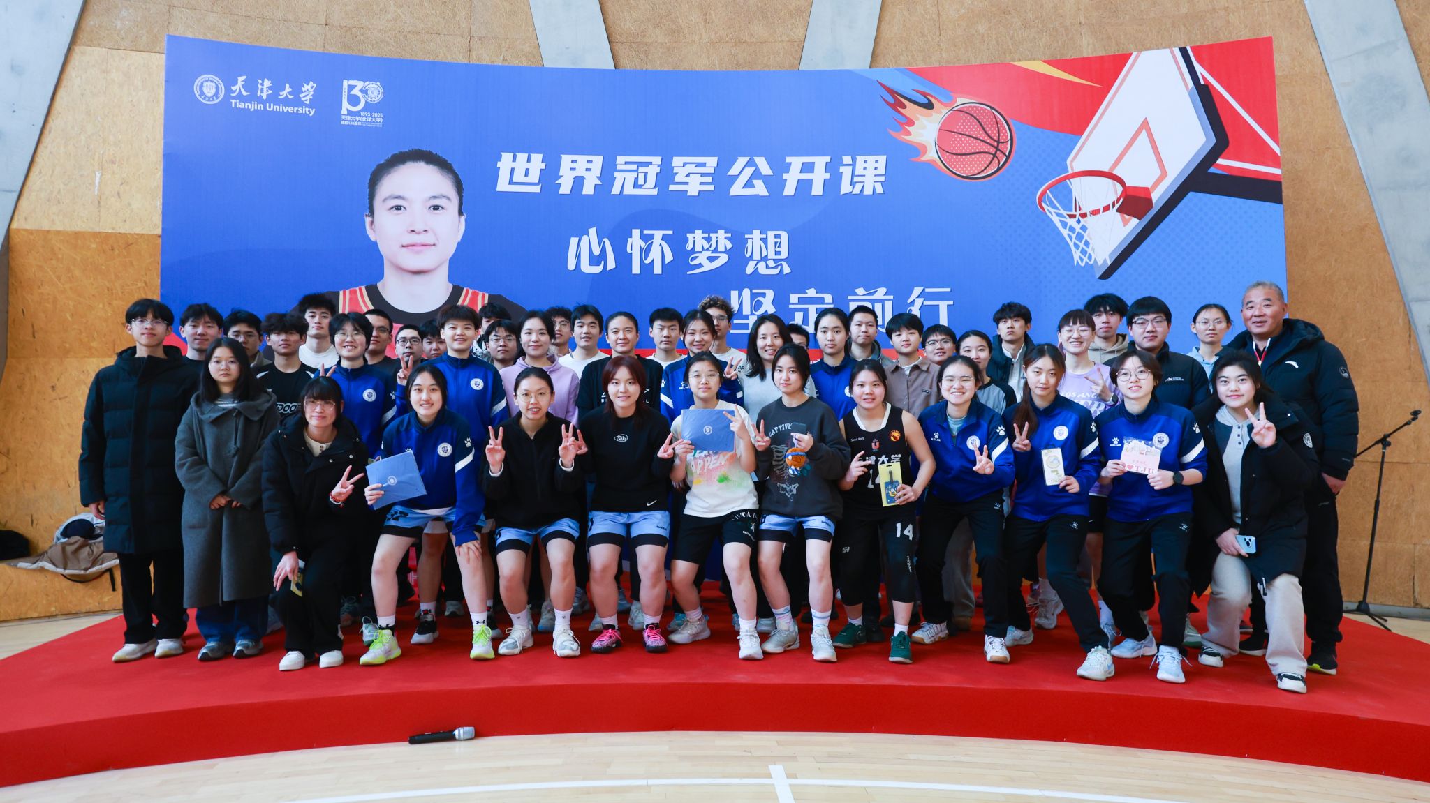 1月24日,“世界冠军公开课”在天津大学北洋园校区篮球馆内成功举办。本次活动特邀天津大学体育部副教授、全运会冠军、三人篮球国家队助理教练兼队员王丽丽担任主讲嘉宾,为天津大学的校队成员及众多篮球爱好者带来了一场内容丰富、互动性强的篮球公开课。