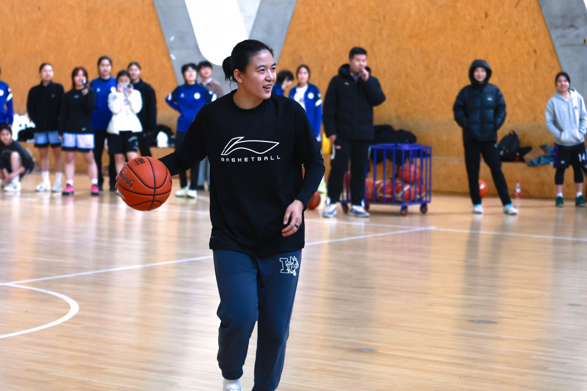 值得一提的是,当天上午王丽丽还为天津大学教职工带来了专业的篮球教学指导活动,随后更与教职工们同场切磋、互动交流,携手呈现了一场精彩纷呈的友谊赛。