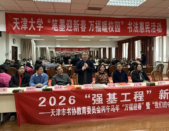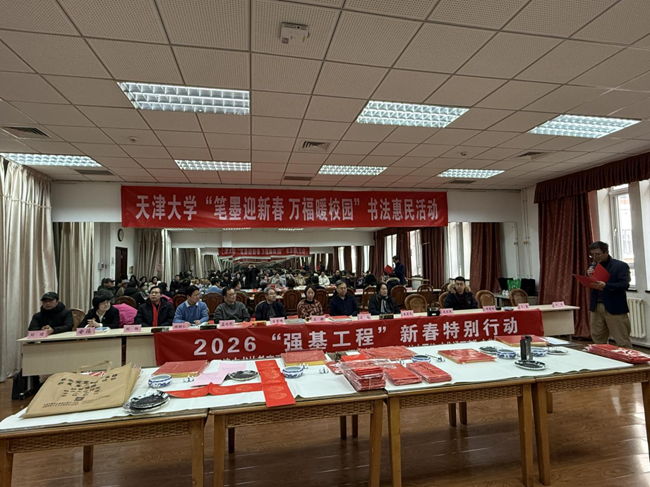 为迎接2026丙午马年新春,1月30日,天津大学工会联合人文艺术学院工会、天津市书协教育委员会,在卫津路校区教职工文化活动中心举办“笔墨迎新春 万福暖校园”书法惠民活动,为教职工送上新春祝福。