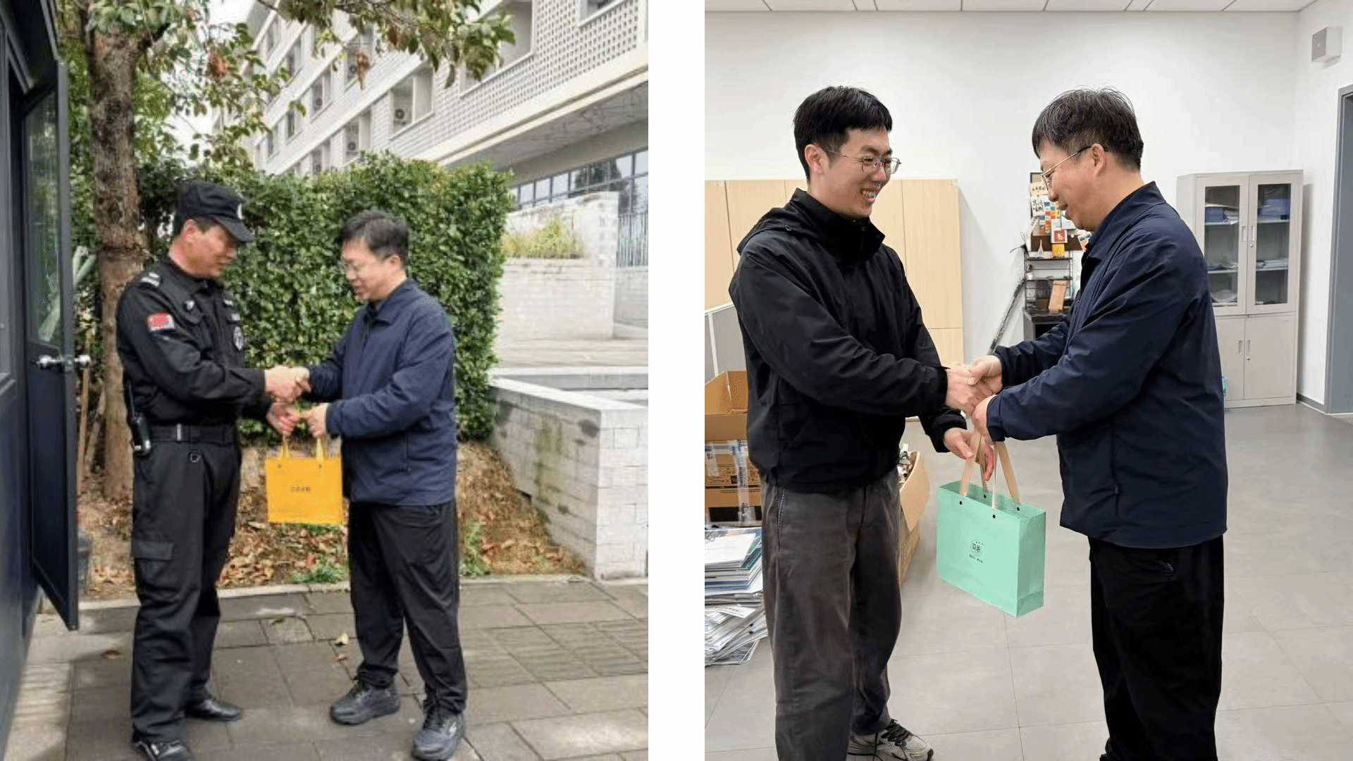 慰问过程中,黄辉为大家送上新春慰问品。真挚关怀与暖心祝福,让在场人员倍受感动与鼓舞。大家纷纷表示,将以更加饱满的热情值好班、守好岗,以实际行动为校园祥和稳定筑起坚实防线。