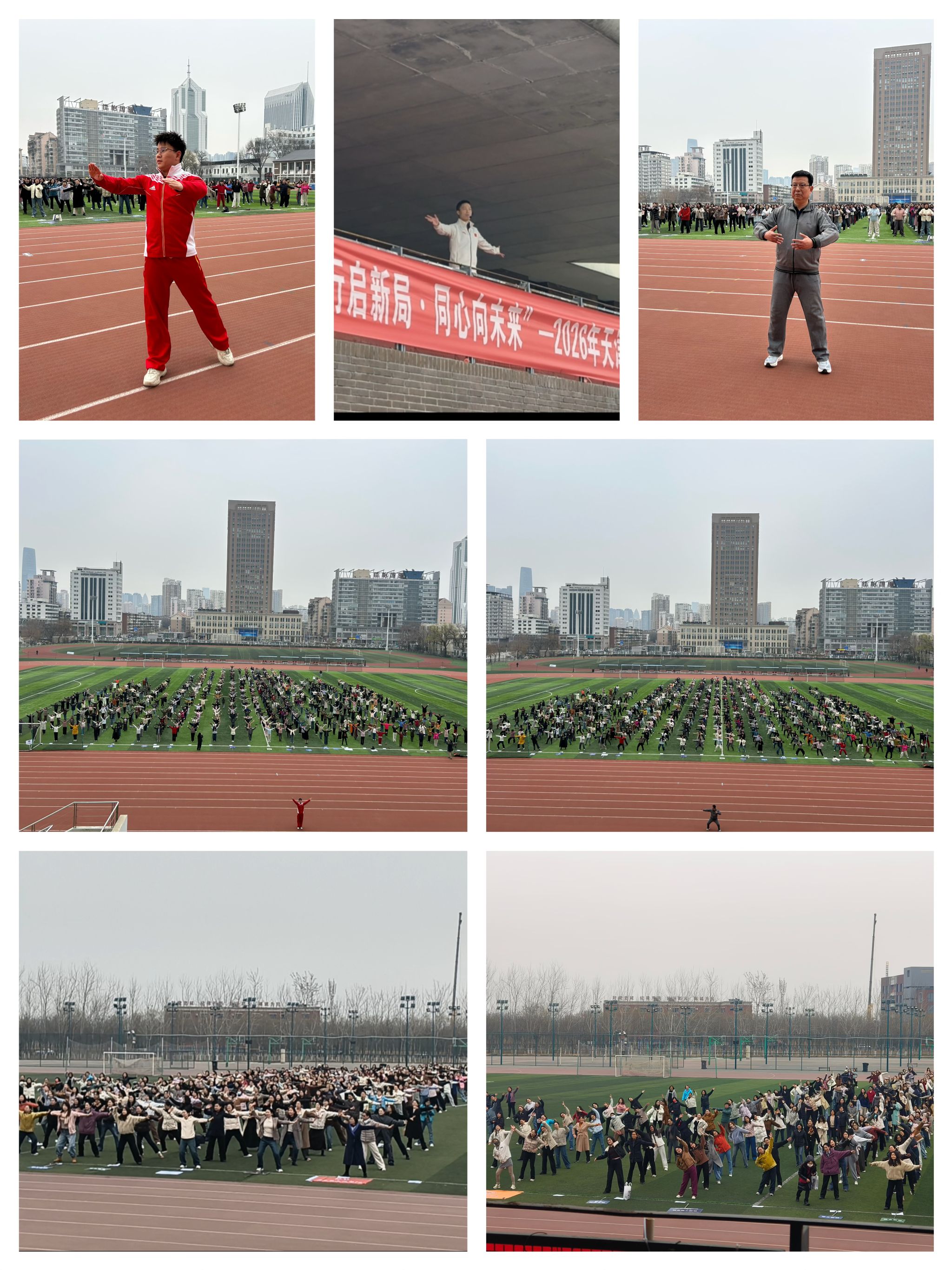 为深入学习贯彻习近平总书记重要回信精神,庆祝第116个“三八”国际劳动妇女节,丰富女教职工文化生活,3月13日中午,天津大学工会以“健行启新局·同心向未来”为主题,在卫津路校区与北洋园校区同步开展三八集体健身活动。各院级工会积极响应,全校1000余名女教职工踊跃参与,现场氛围热烈,尽显巾帼奋进风采。天津大学党委常委、统战部部长张俊艳出席了卫津路校区的健身活动。