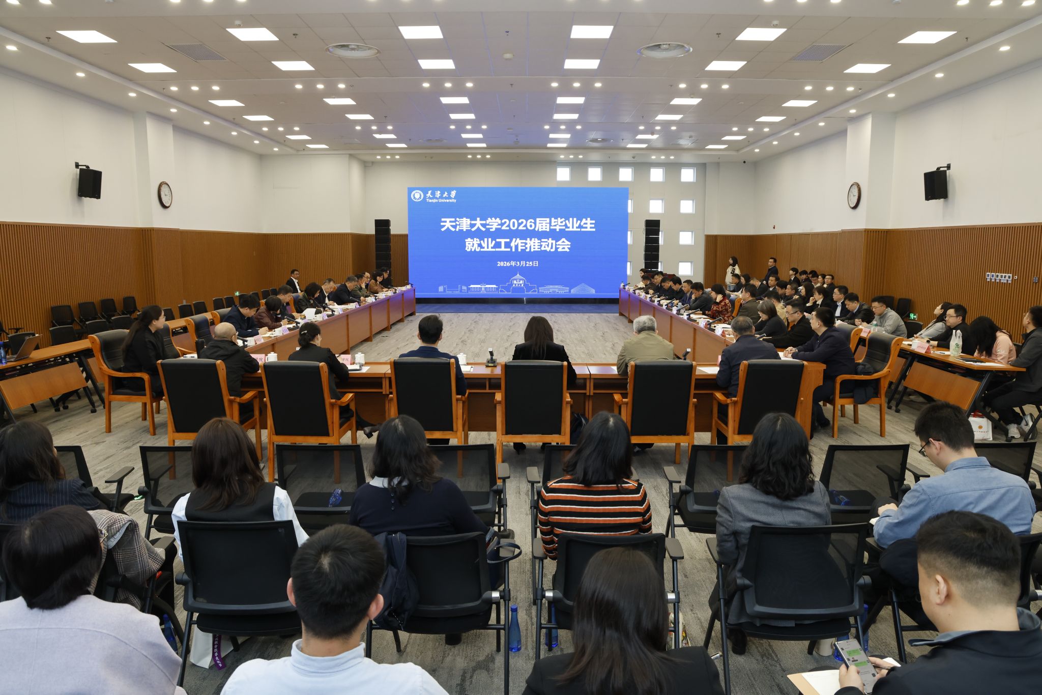 杨贤金强调,要坚持立德树人根本任务,把就业育人融入学校思政工作大局,在学生中树牢“祖国的需要就是我的志愿”的就业观,强化分层分类就业精准指导,讲好天大学子扎根基层、服务国家重点领域的就业故事,鼓励学生到基层、到西部、到国家需要的地方去。要加强统筹协调,充分发挥招生培养与就业联动机制,优化学科专业布局,主动对接未来产业发展需求,深化产教融合育人,促进人才培养供需适配。要压实主体责任,学校就业创业工作领导小组要发挥统筹协调作用,各院级党组织要切实扛起主体责任,亲自研究部署、亲自走访拓岗、亲自帮扶困难学生,坚守就业工作底线,构建“大就业”工作格局。真正把就业工作势能转化为学校人才培养和卓越发展的有效动能,为加快建设教育强国科技强国、推进中国式现代化作出新的贡献。
