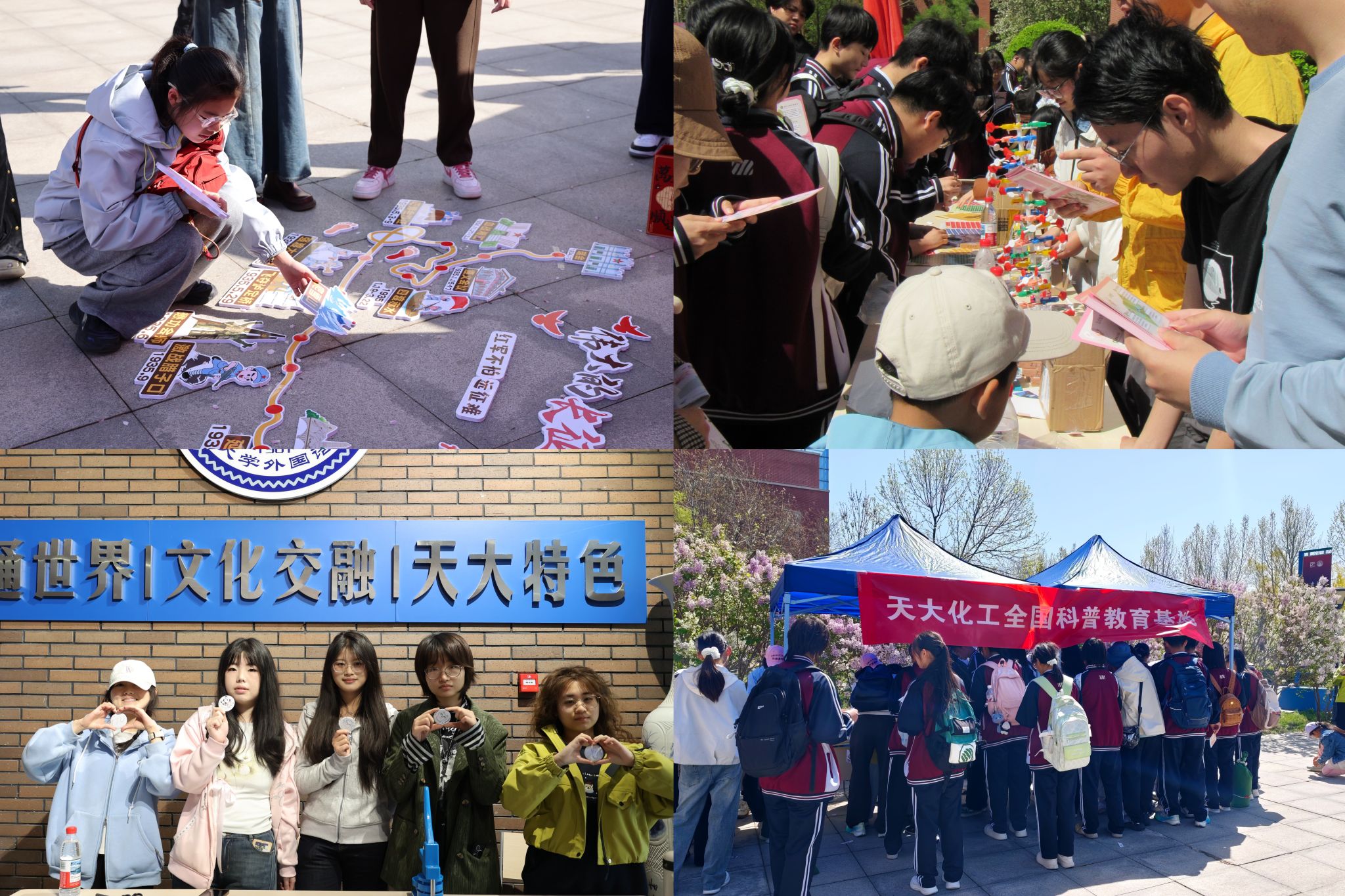 各学院活动精彩纷呈。马克思主义学院开展“海棠花开忆长征”主题系列活动,用“拼豆”拼出对祖国的热爱,通过VR设备开启身临其境的长征之旅。化工学院全国科普教育基地展位人气爆棚,海棠仙酿、化学密信等趣味互动实验吸引众多参观者。计算机学院用AI算法生成北洋场景照片,人工智能学院举办“AI文创”游园会,以科技赋能文化、创意点亮春日。理学院打造“海棠深处有‘理’想”系列主题活动,物理科普趣味十足。数学学院十二面体日历折纸体验融合数理之美,手工制作十周年院庆LOGO纪念卡留存专属记忆。iGEM-Tianjin团队开展“碱基会说话”互动游戏,将文字转码为ATCG碱基序列。外国语学院设法语文化主题展区,尽显语言魅力与异域风情。人文艺术学院举办“自我与美学的凝视——美学课程作业展”,掀起一场关于自我与美学的深度对话。宣怀学院里,品鉴一杯由学生自主经营的咖啡,看课堂知识如何转化为真实的商业实践。