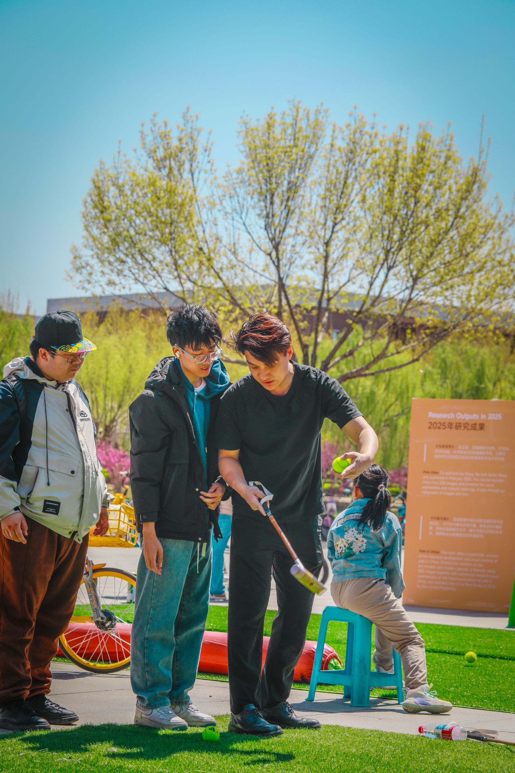 大通学生活动中心广场上活力迸发,健美操锦标赛冠军、青年教师何燃燃带领啦啦操社团用精彩表演点燃全场。青年湖畔碧波荡漾,天津大学龙舟队挥桨逐浪、破浪前行。众多师生游客齐聚壁球馆,体验壁球运动的独特魅力,欢声笑语不断。天麟广场上,中华民族传统文化展示惊艳亮相,民族盛装展演尽显文化魅力。马球击球体验区人气高涨,配备专业球杆与马球,让游客亲自感受基础击球乐趣。
