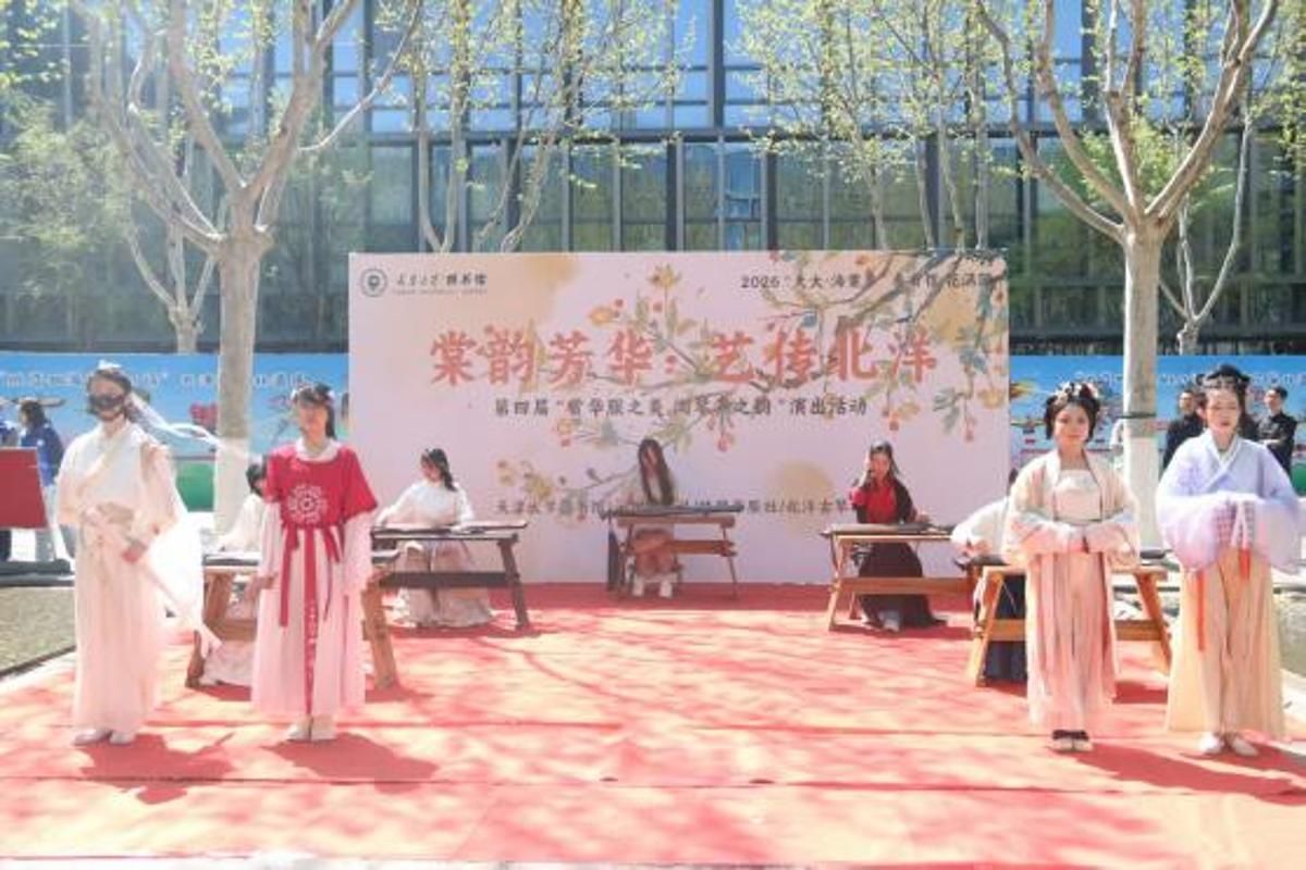 太雷广场上,海棠花开正盛,吉他弹唱为春日增添青春气息,钢琴声余音绕梁。2026年天津大学海棠季社团文化节举办,70余个学生社团集中开展多元活动,文艺互动、文创体验、科创展示、趣味游园、体育竞技、公益志愿等内容精彩纷呈,吸引众多师生、校友和市民游客驻足参与。舞台上,街舞、器乐、演唱、古琴、魔术等节目轮番上演,更有退休教师带来的服饰展演与天津大学幼儿园小朋友献上的幼儿舞蹈,赢得阵阵掌声,气氛热烈。