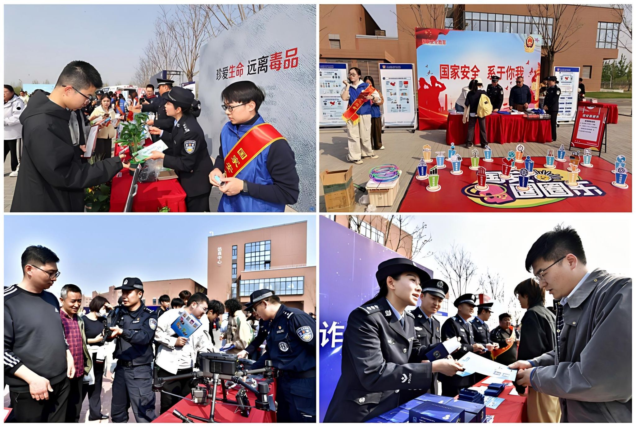 活动精心设置了国家安全、反电信网络诈骗、禁毒宣传、反恐防暴、特警装备展示、网络安全、交通安全管理、出入境证件政策解读、户籍政策咨询服务等九大互动体验专区。各展区通过案例剖析、实物展陈、模拟演练、VR体验、有奖问答等多样化形式,将抽象的安全知识转化为可感、可视、可参与的沉浸式学习场景,有效提升师生的防范意识和应急处置能力。