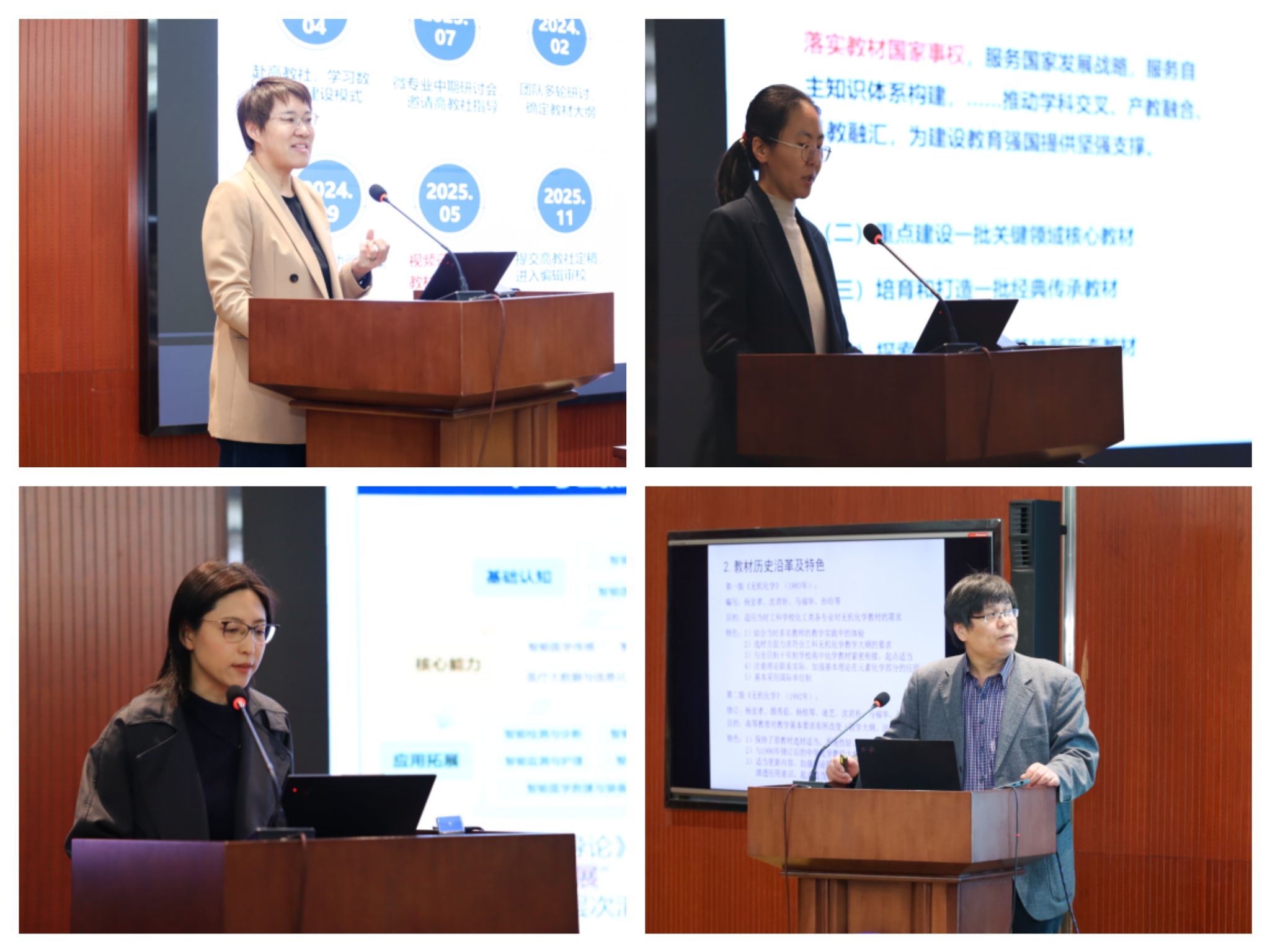 在教材建设经验交流分享环节,理学院国家教材建设奖《无机化学》教材主编王建辉,化工学院副院长黄守莹,医学院副院长杨佳佳,人文社科处处长、《储能政策与市场》数字教材主编杜慧滨分别从国家教材建设奖申报与建设经验、学院教材建设与管理、“医学 101”特色教材建设路径、数字教材创新实践等方面分享经验做法,为全校教材建设提供鲜活实践范例。