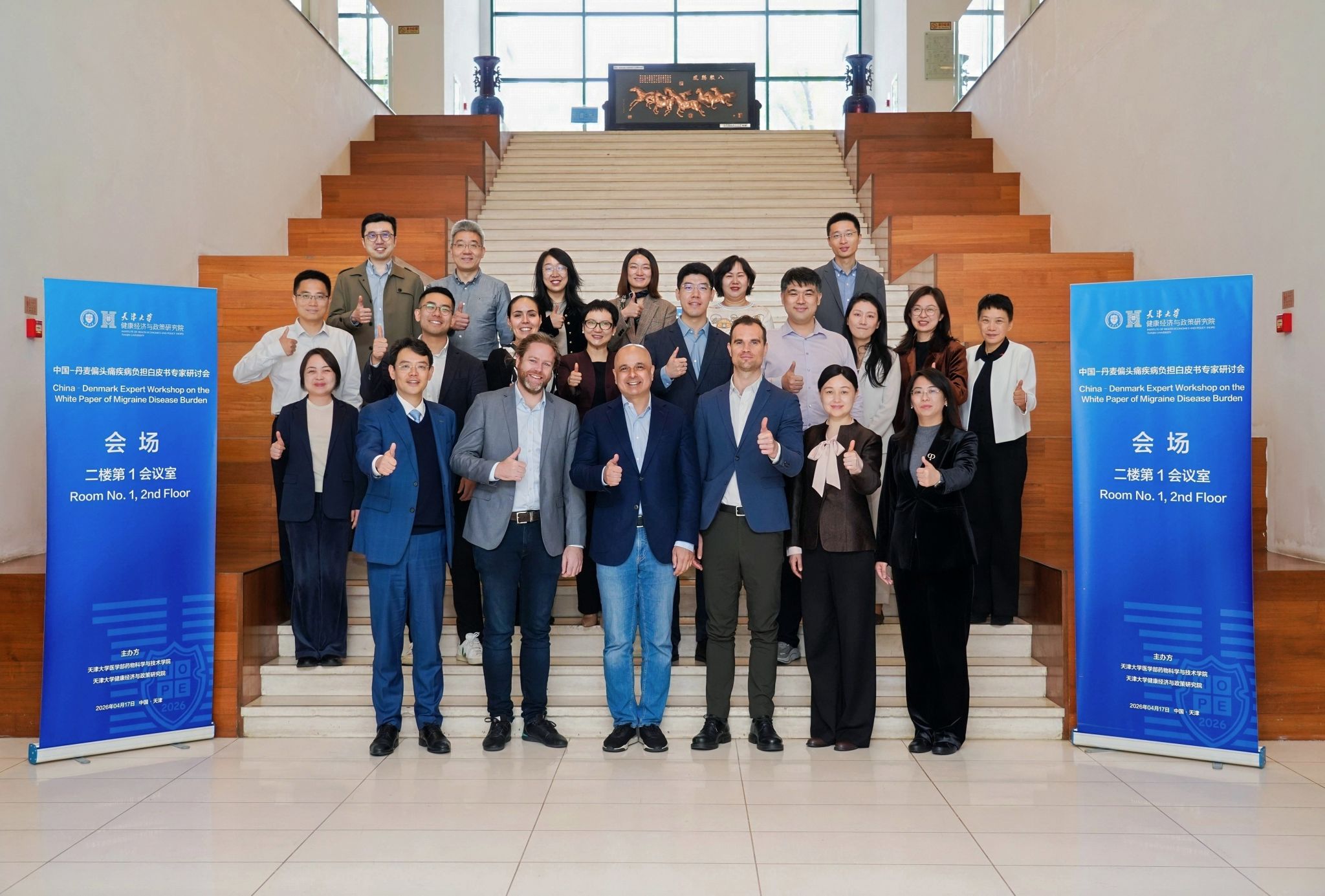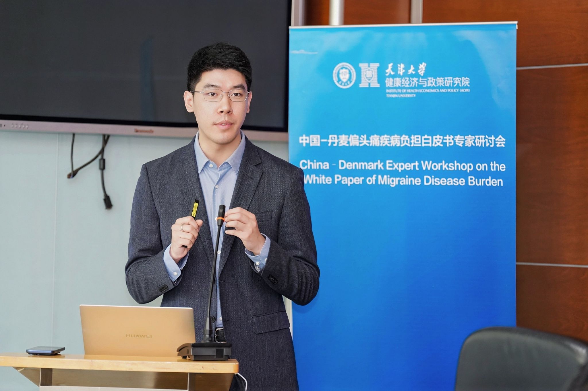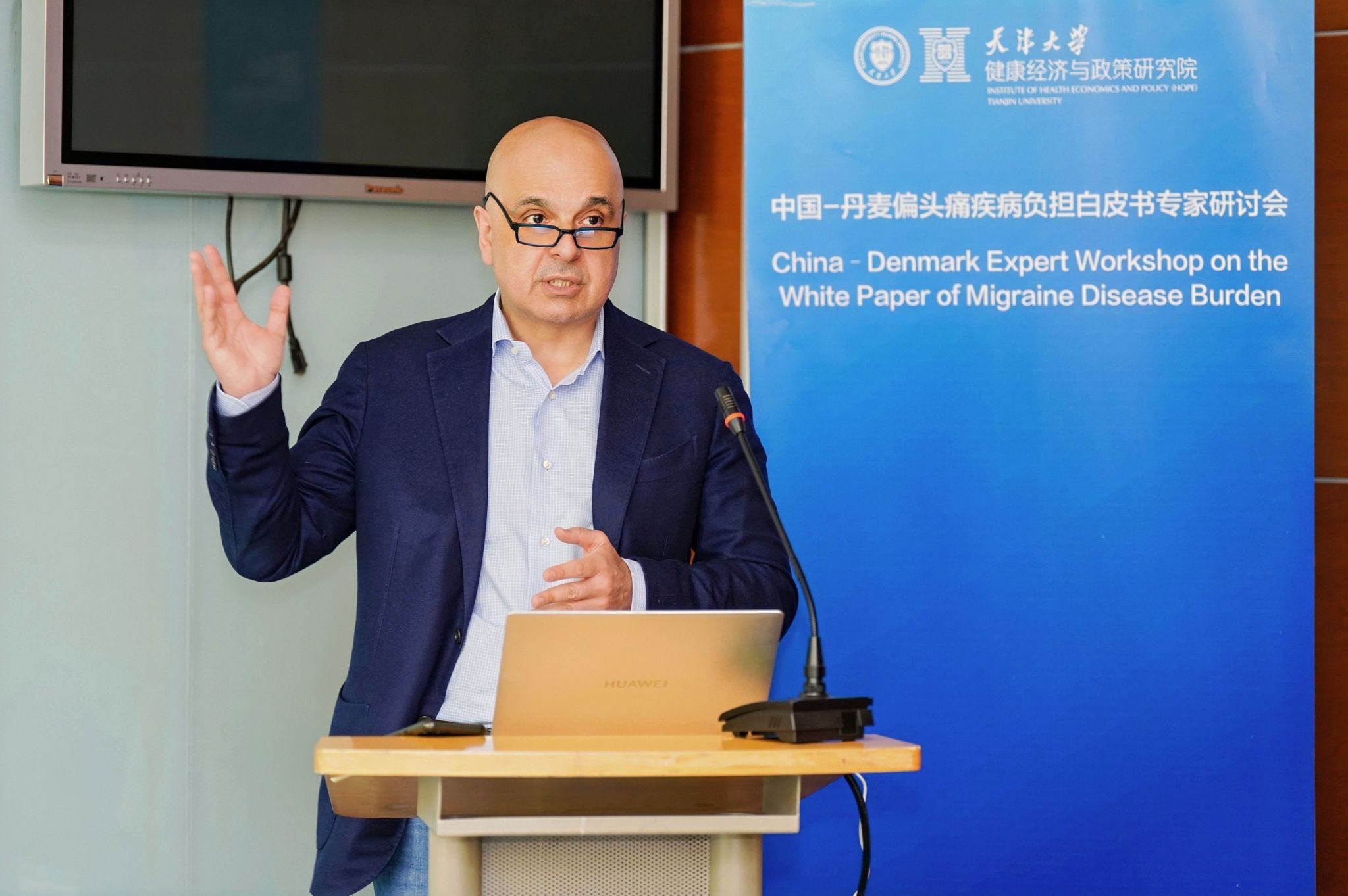 4月17日上午,中国-丹麦偏头痛疾病负担白皮书专家研讨会在天津大学卫津路校区举行。本次研讨会由天津大学医学部药学院、天津大学健康经济与政策研究院联合主办。天津大学国际合作与交流处处长张玲出席会议。丹麦驻上海总领事馆科技创业处领事Anders Sloth Nielsen、丹麦哥本哈根大学瑞斯医院丹麦头痛中心主任Messoud Ashina教授、转化研究中心高级研究员Kristian Agmund Haane教授、丹麦创新中心(上海)高级创新官郭煜博等丹方代表出席会议。国家卫健委卫生发展研究中心国际政策研究室主任王云屏、北京天坛医院头痛科主任医师王永刚、天津医科大学总医院药剂科负责人袁恒杰、北京大学医药管理国际研究中心副主任韩晟、大连医科大学教授袁妮、山东大学第二医院副主任药师周蒙、中国人民大学副教授吕兰婷、复旦大学副研究员刘世蒙、天津市卫生健康发展研究中心副研究员刘春雨等近20位专家学者出席会议。会议由药学院党委书记、健康经济与政策研究院院长吴晶主持。