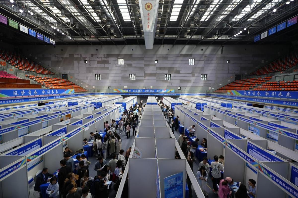 4月25日上午,天津大学卫津路校区体育馆人头攒动、展位林立,第三届全国大学生职业规划大赛总决赛专场招聘会暨“千校万企”供需对接会在此拉开帷幕。近500家用人单位与100余所高校现场参会,提供就业及实习岗位3万余个,近4000名学生到场投递简历、洽谈求职,现场供需对接氛围热烈。