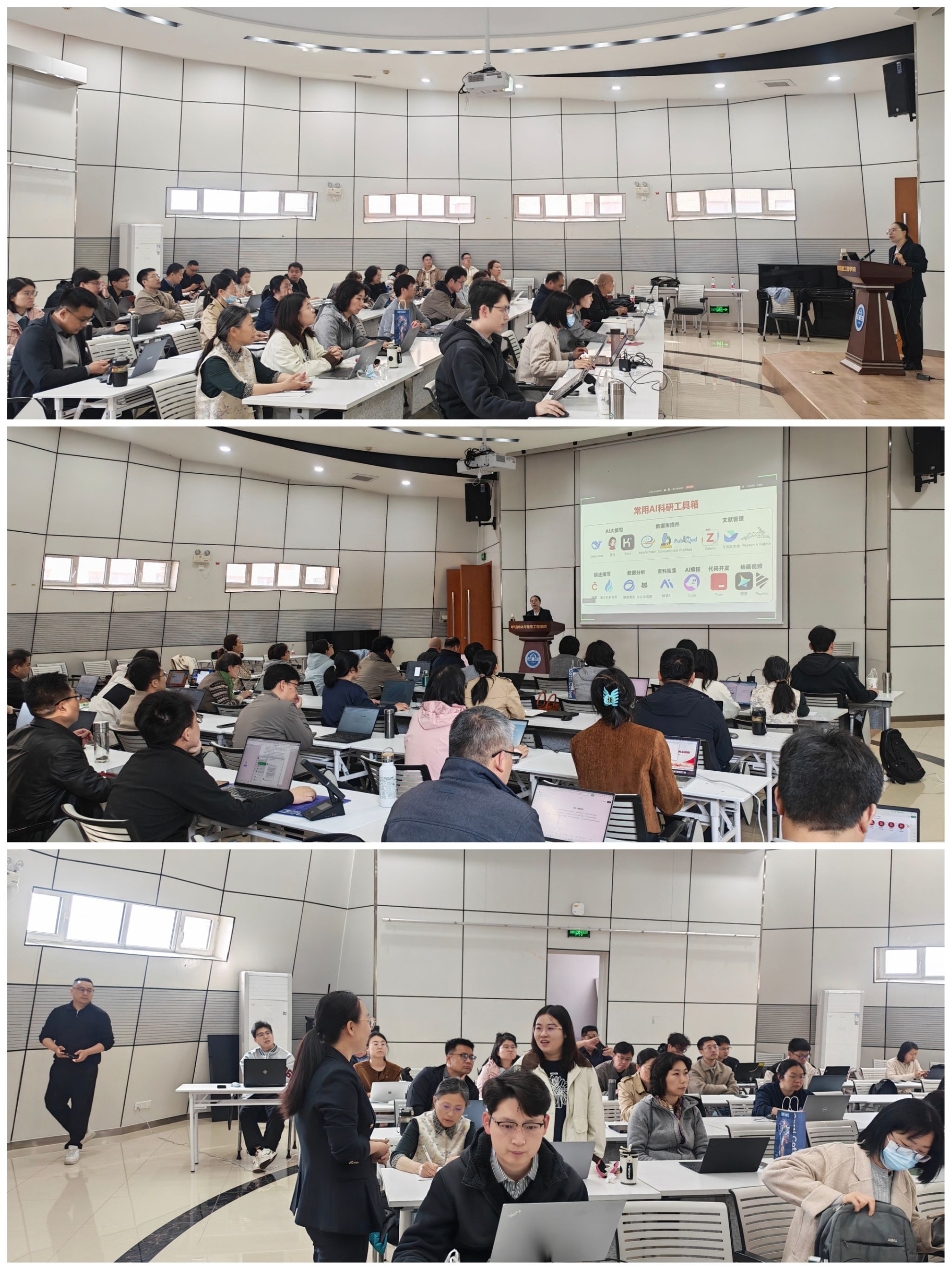 在教育数字化转型浪潮中,人工智能已成为提升高校教师创新效能的关键驱动力。为破解教师在AI应用中“不会用、不敢用、用不好”的痛点,教师培训中心围绕“AI+教学革新、AI+科研增效、AI+管理跃升”三大核心主题,创新推出“送培训到学院”系列活动,联合学院定制化开展教师数字素养能力提升工作坊。4月以来,第13至15期工作坊先后走进自动化学院、建筑学院和数学学院,精准对接学科特点与教师需求,助力教师实现从“AI工具使用者”到“AI场景应用者”的能力跃升。