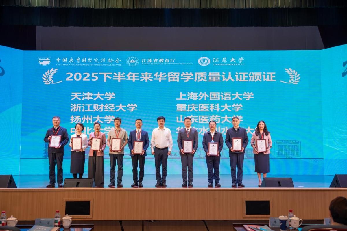 4月27日,由中国教育国际交流协会主办的2026年来华留学对话活动在江苏镇江举行。天津大学副校长明东应邀出席,代表学校领取来华留学生高等教育质量认证最高等级A+证书,并作了题为《天津大学来华留学工作高质量发展实践》的主旨报告。