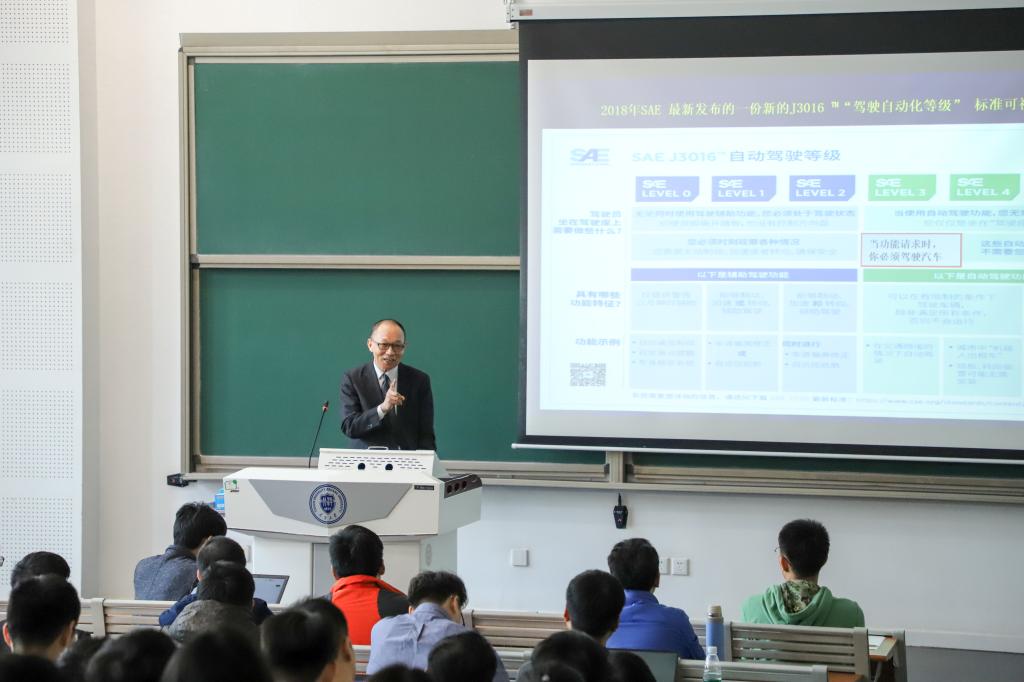 据悉,此次李德毅院士的讲座为学校全校研究生选修课《智能网联汽车技术》中的一节课。《智能网联汽车技术》研究生公开选修课由天津大学无人驾驶汽车交叉研究中心申请开设。课程由无人驾驶交叉研究中心的机械、精仪、电信、自动化、计算机、微电子等6个学院7个学科的核心导师共同承担教学任务,旨在让学生们详细学习和了解智能网联汽车的环境感知、图像识别、驾驶决策、路径规划、机器学习、仿真建模、系统测评等关键技术的内涵、原理、趋势、研究和开发方法。通过安排学生到智能驾驶实验室、实验样车及测试场进行实践学习及设立随堂实践小课题激发学生钻研和实践的热情,探索建成特色鲜明、真正交叉融合的天津大学智能网联汽车创新实践课程。