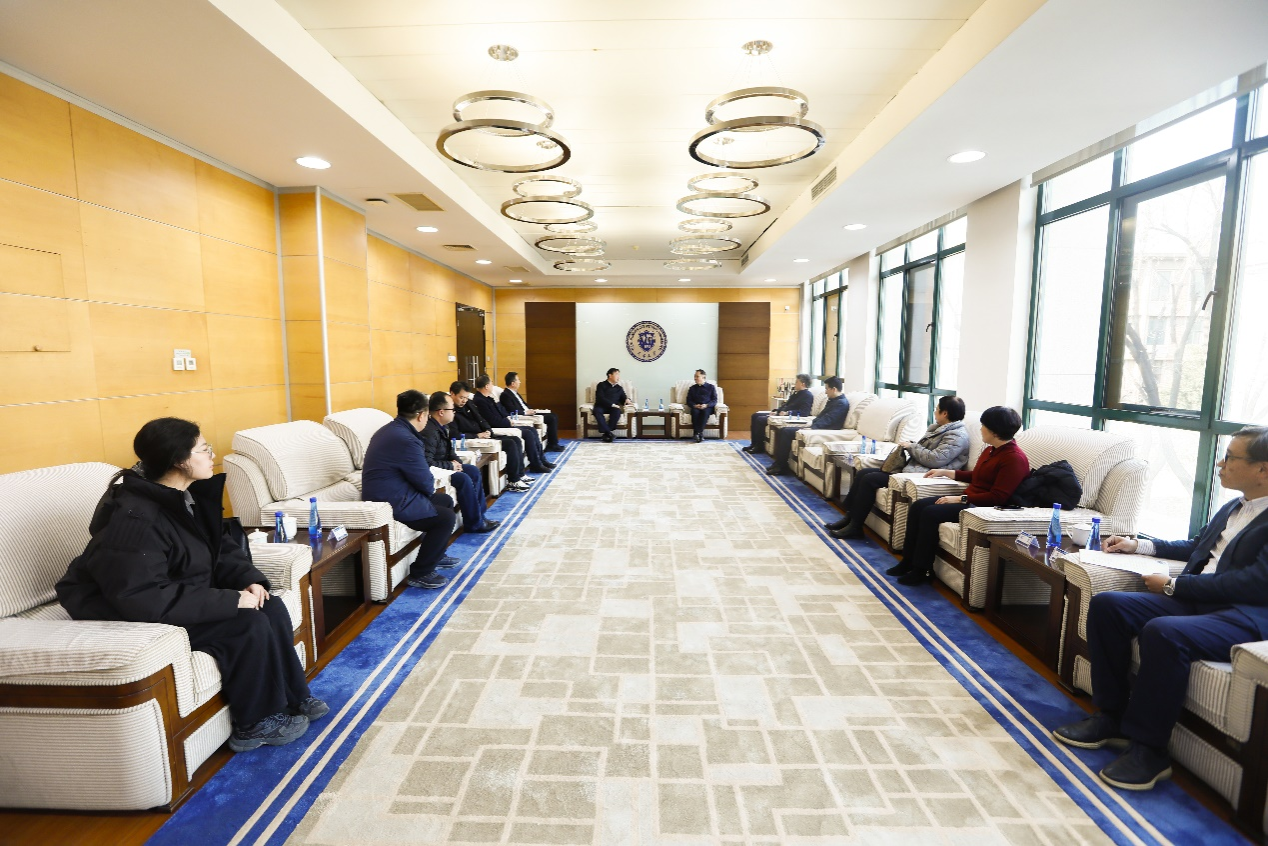 本站讯(记者刘晓艳 摄影陈晓金)12月11日,内蒙古大学党委副书记乔彪一行来访我校。校党委书记杨贤金在卫津路校区会见来宾。内蒙古大学发展规划处、资产管理处、后勤保障处、研究生院相关负责同志,校党委副书记韩庆华,党办校办、发展规划处、资产处、建筑设计总院相关负责同志参加会谈。
