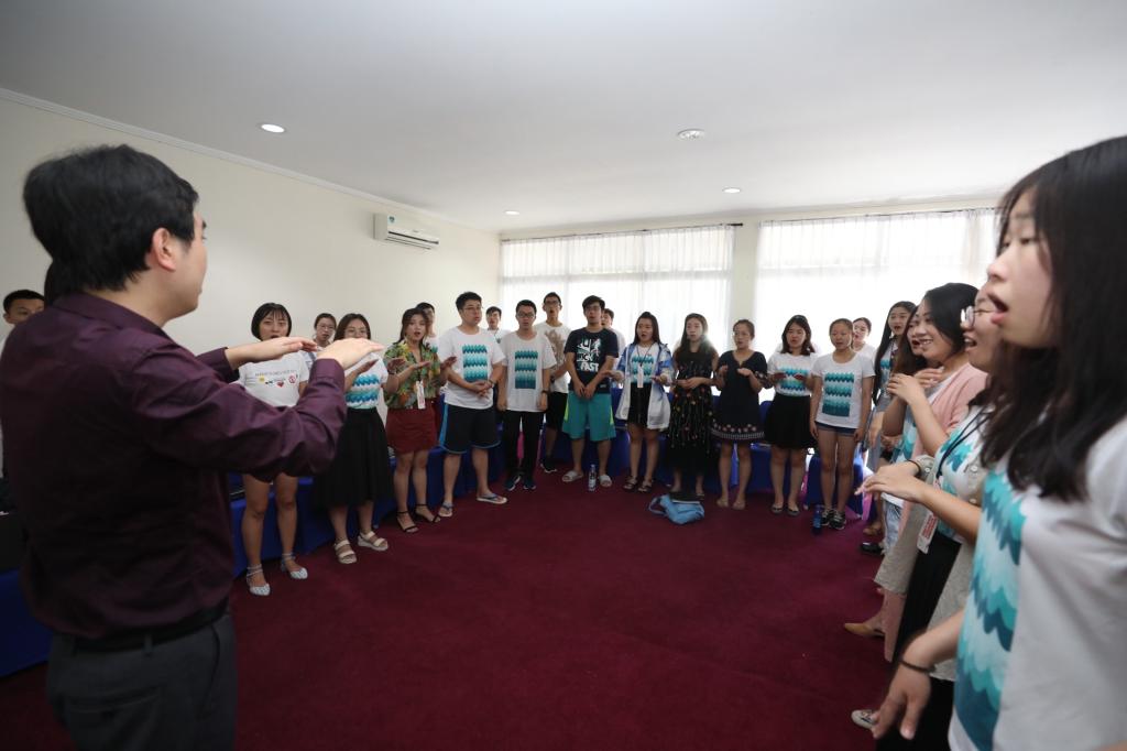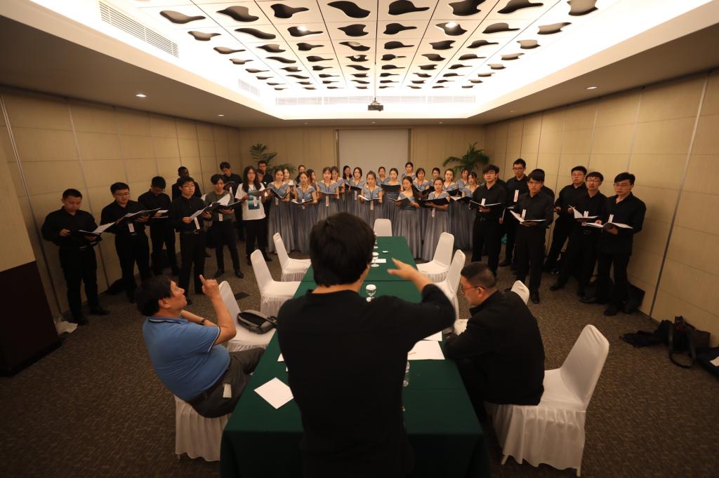 合唱团同学们在驻地进行紧张排练