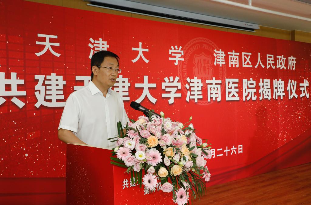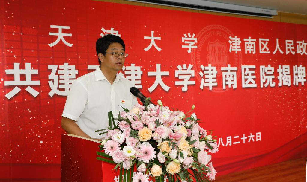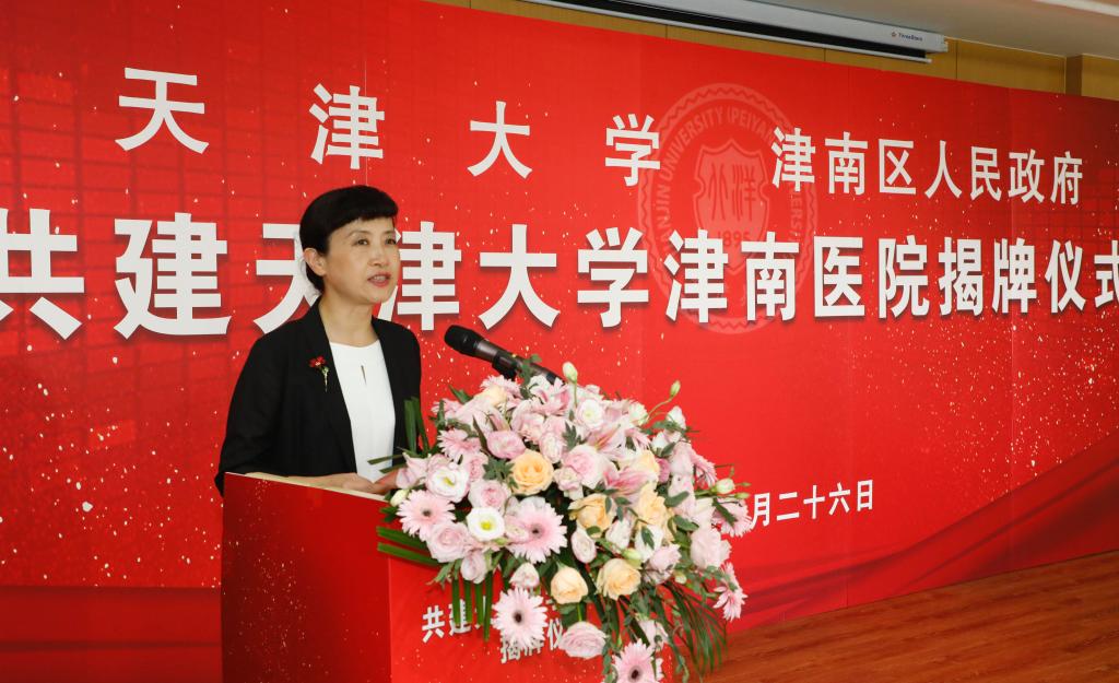 区人大常委会副主任、天津大学津南医院院长薛春晓代表医院作表态发言。天津市卫健委医政医管处副处长张涛代表市卫健委对天津大学津南医院的成立表示祝贺,并就加强区校合作,推进医疗健康事业发展提出意见建议。