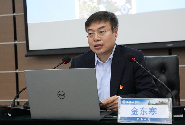 结合前期调研的成果,金东寒从外部环境的变化和学校事业发展现状两个角度深刻剖析了建设中国特色世界一流大学的时代挑战与实际问题,特别强调了关于战略规划和放管服的问题。