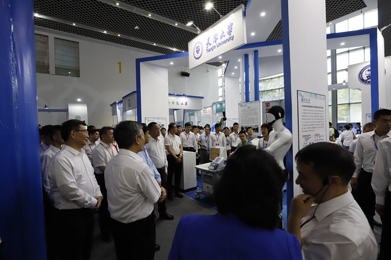 出席开幕式的领导嘉宾在天津大学展位参观并听取讲解