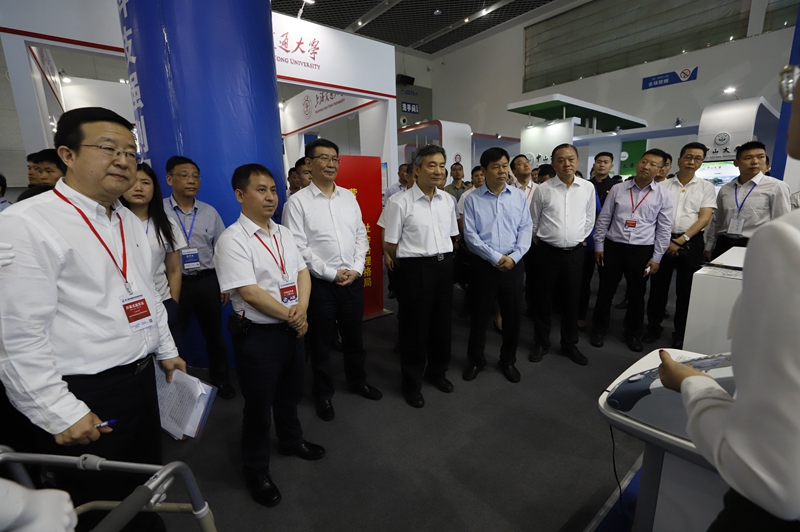 开幕式后,领导与嘉宾到科技成果展区视察参观,在天津大学展位前,观看了“神工”系列智能康复机器人演示,并饶有兴致地询问了相关情况。