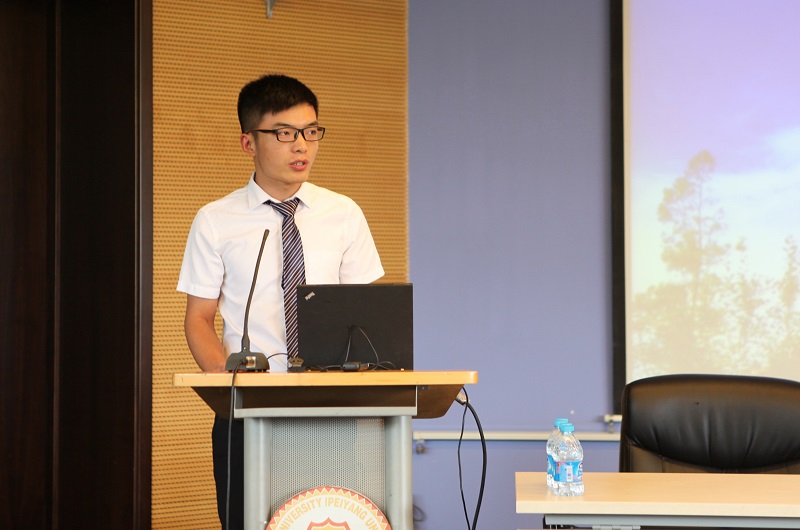 随后,我校2014级翻译硕士研究生石交龙作为学生代表进行了发言,他以这两年在学校的学习经历为例浅谈了自己对学校国际化工作的认识,并提出了对学校国际化的期望。他希望学校可以为学生提供更多走出去的机会,同时扩大引进来的规模,创造多元校园氛围,大力发展文科专业,让文科的学生有更多参与海外交流的机会。